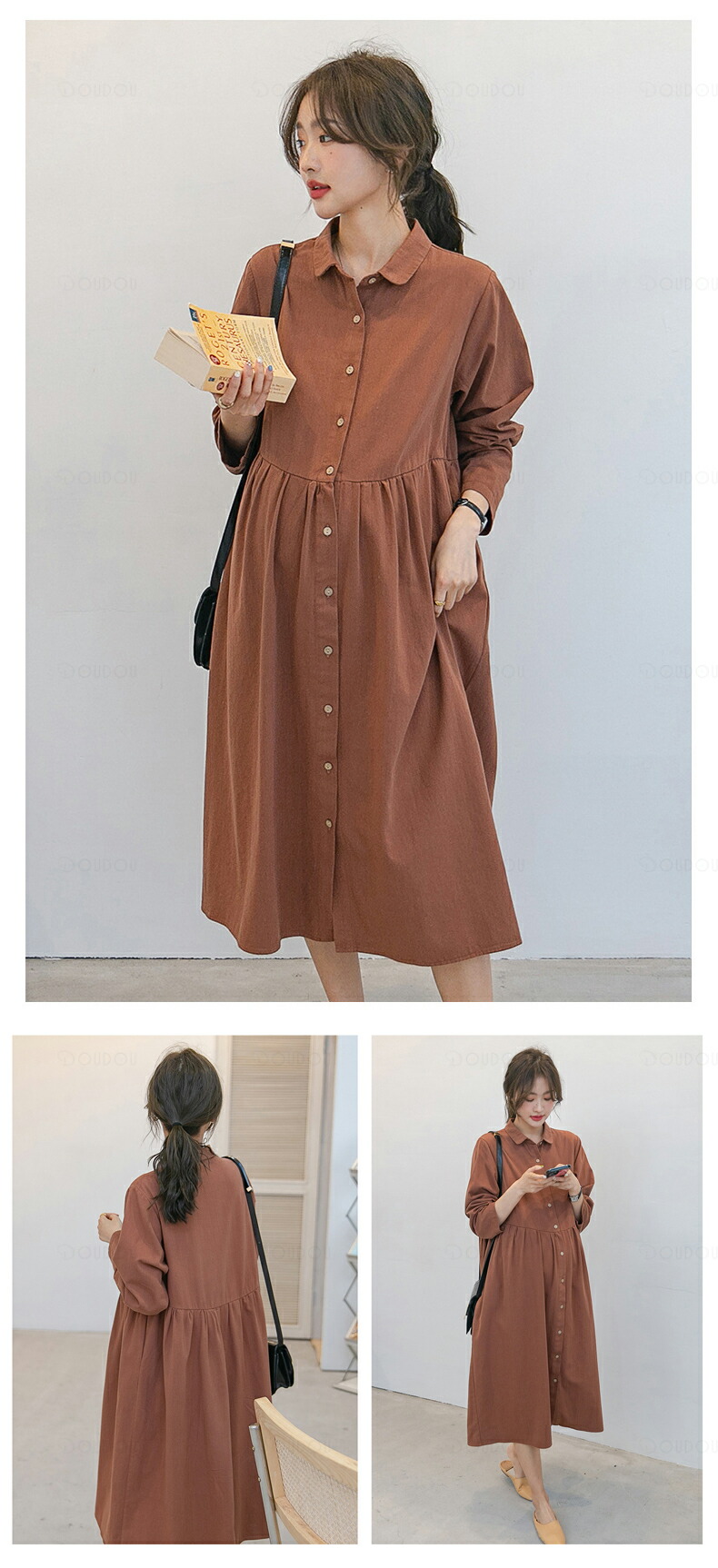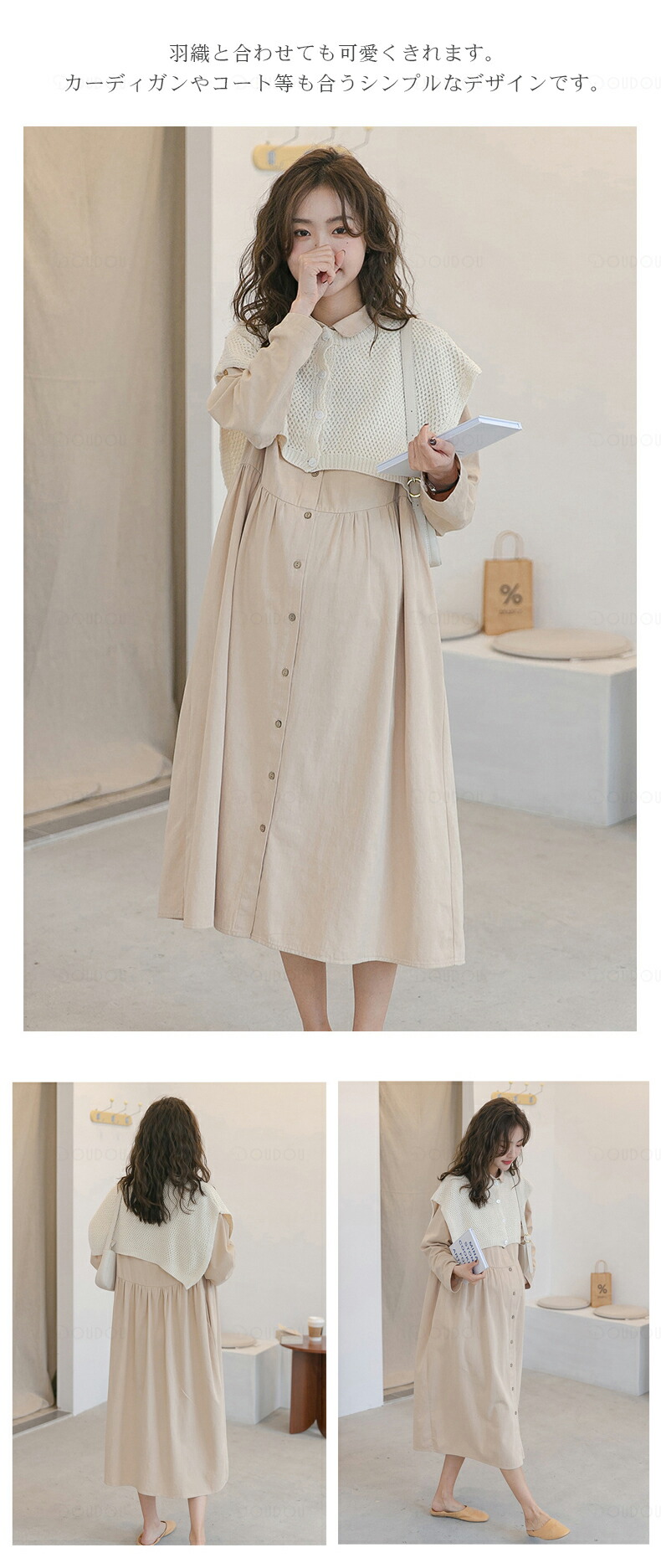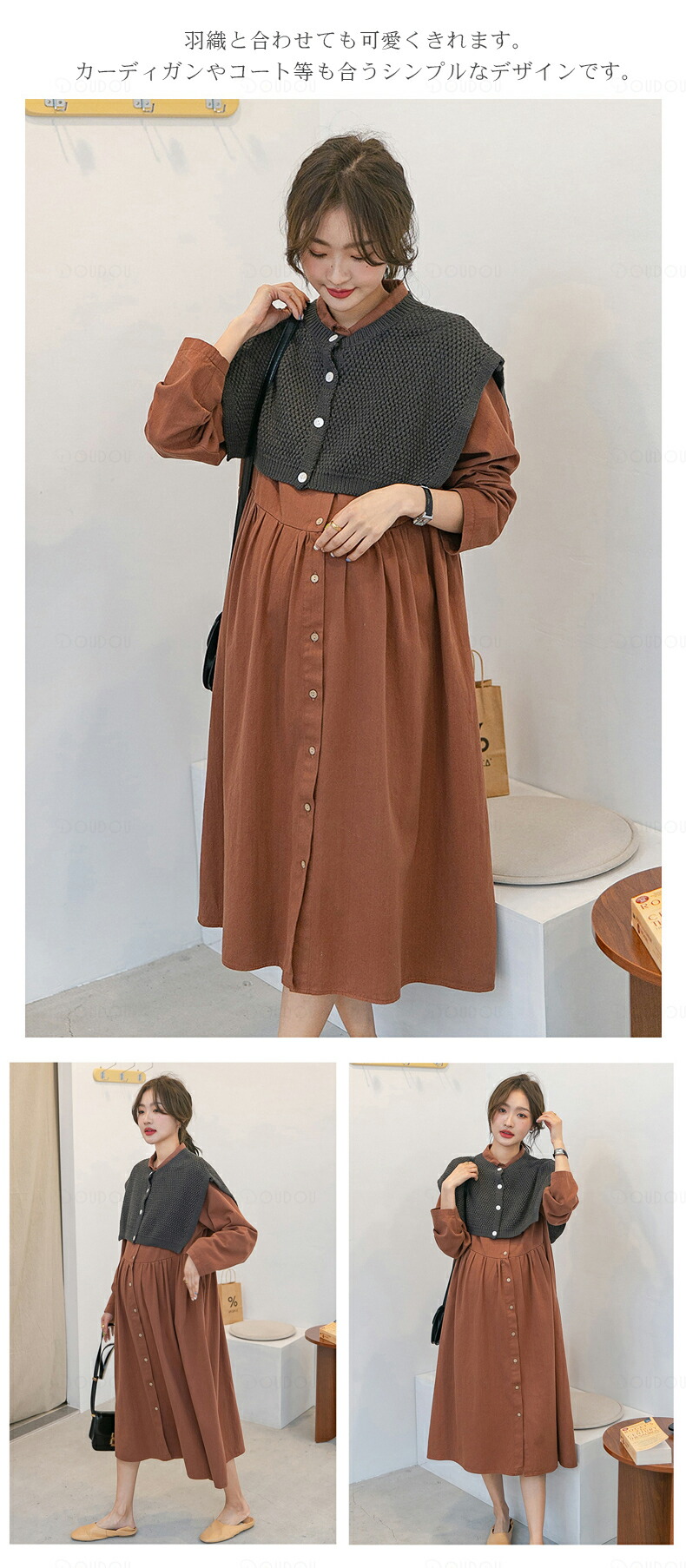 マタニティ ワンピース 秋冬 オフィス キッズ ベビー マタニティ 特集 ブラウン エクリュ