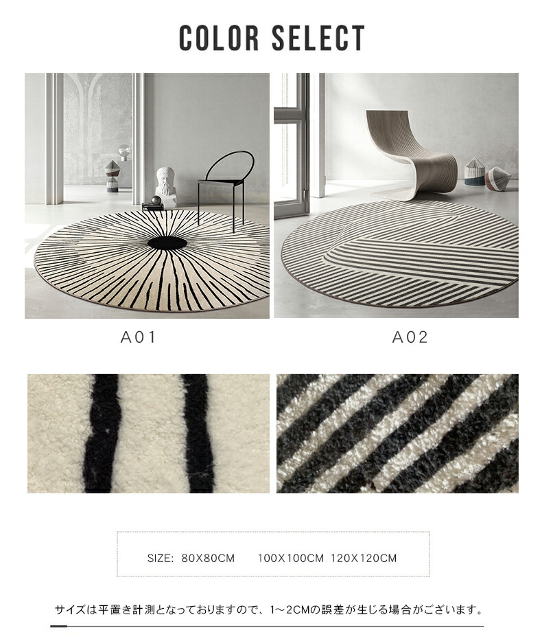 ラグ 丸 洗えるラグマット 丸型 円形 80x80cm 100x100cm 120x120cm A01 A02