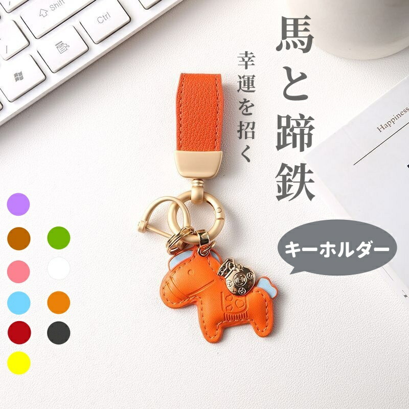馬と蹄鉄のキーホルダー 馬モチーフ 本 財布 ケース キーホルダー キーケース 通販 ピンク ブルー ブラウン レッド オレンジ イエロー グリーン ブラック パープル ホワイト 単品 ストラップ付き