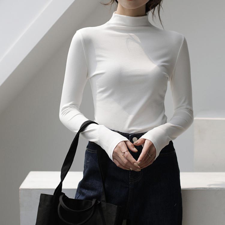 ハイネック レディース トップス 長袖 レディースファッション 通販 ブラック ホワイト ダークブルー コーヒー ベージュ ダークグレー ブルー ライトブルー