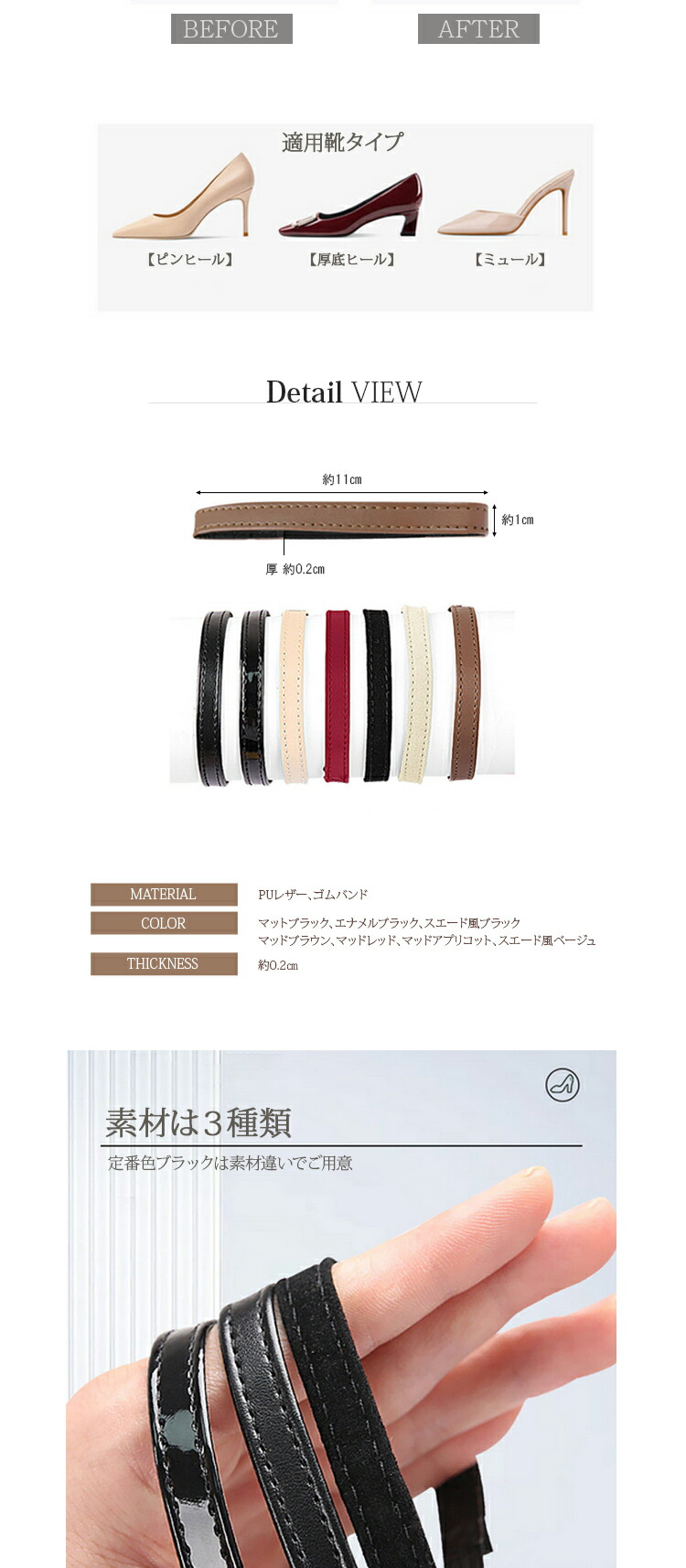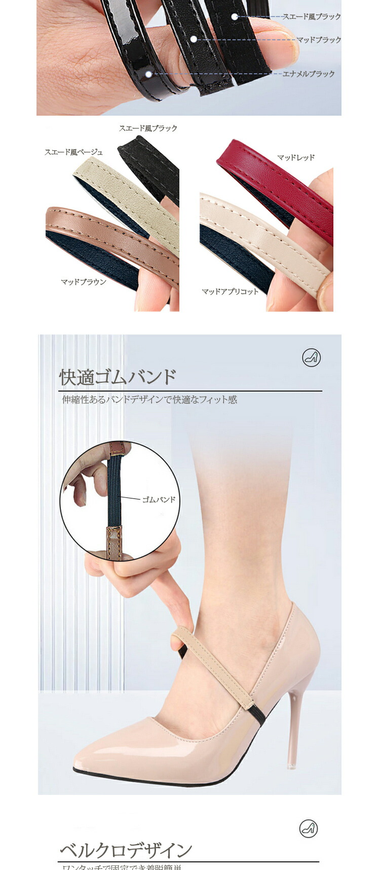 シューズバンド ミュールバンド パンプ 靴ケア用品 アクセサリ その他 通販 マットブラック エナメルブラック スエード風ブラック マッドブラウン マッドレッド マッドアプリコット スエード風ベージュ