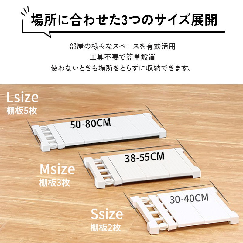 つっぱり棚 伸縮タイプ 30-40cm S M L