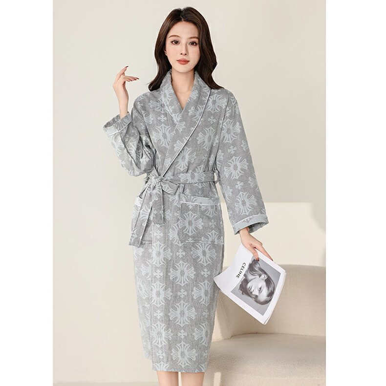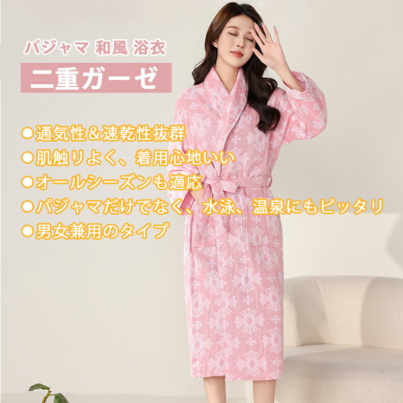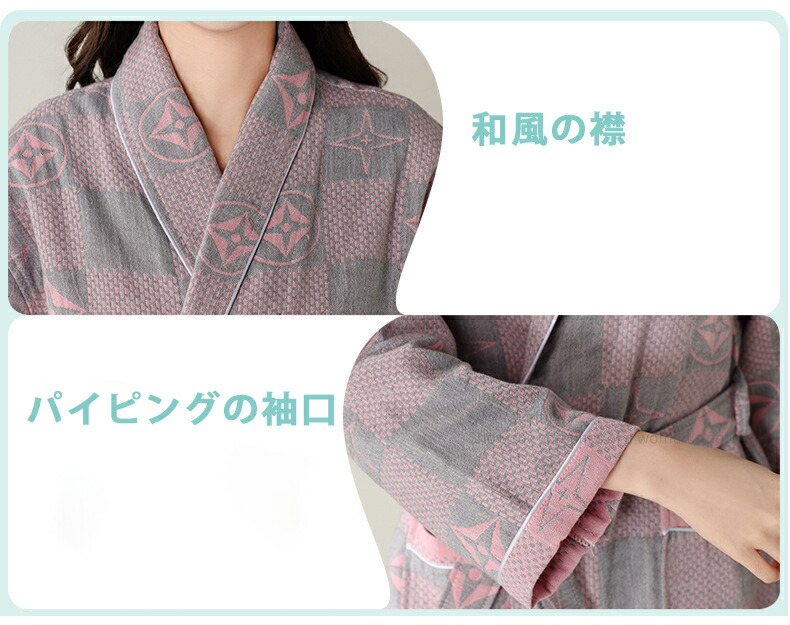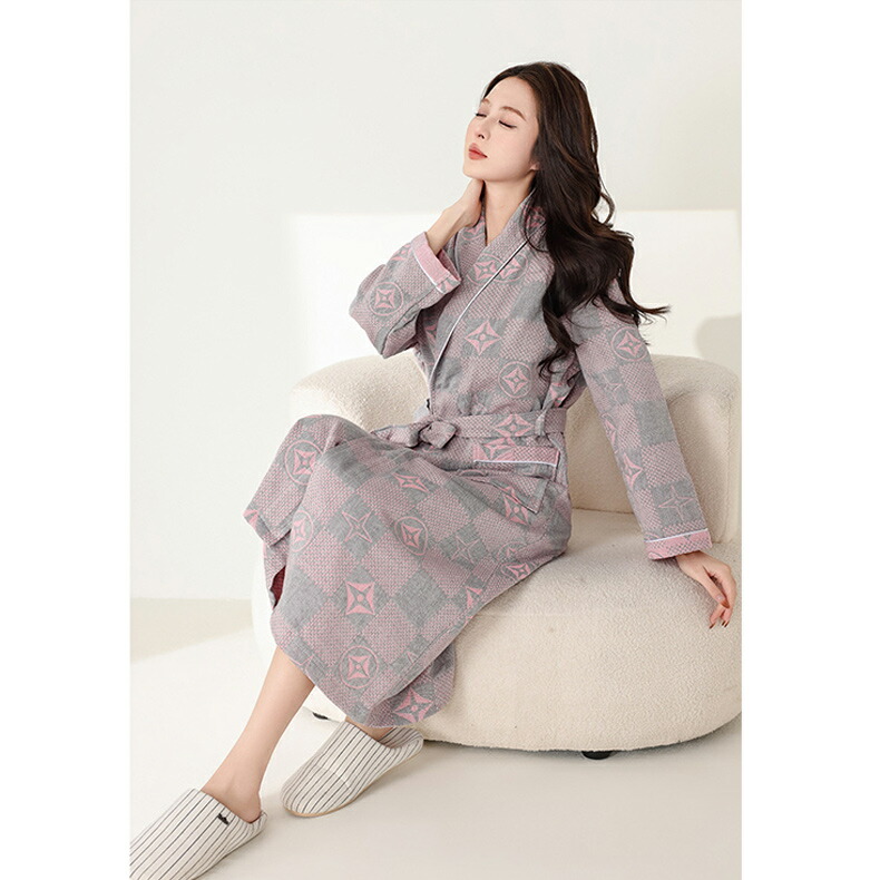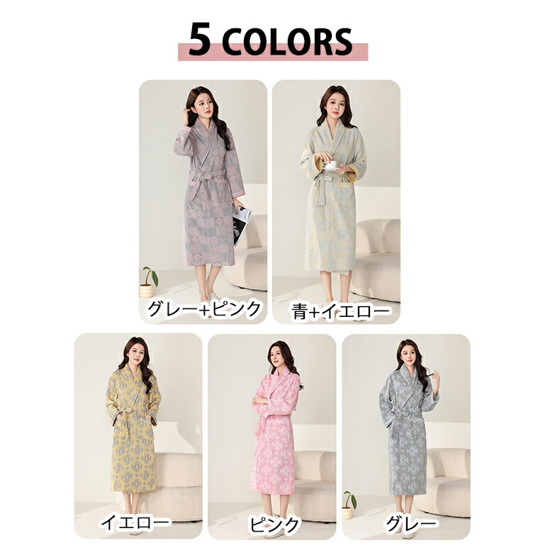 ガーゼコットン バスローブ がーぜ レ レディース ナイトウェア ルームウェア バスローブ 大人気! グレー+ピンク 青+イエロー イエロー ピンク グレー M L LL 3L