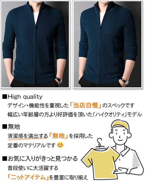 カーディガン メンズ ジップカーディガ トップス カーディガン 続々入荷中 ブラック グレー ダークブルー S M L 2L(XL) 3L(2XL)