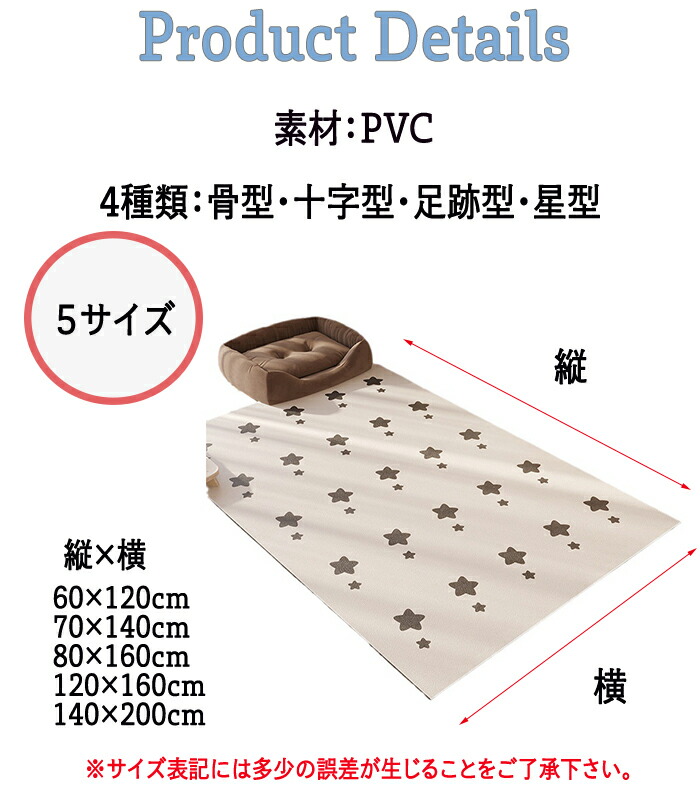 ペットマット 防水 撥水 防滑 滑らな ペット ペットグッズ 人気 十字型 骨型 星型 足跡型 60*120cm 70*140cm 80*160cm 120*160cm 140*200cm
