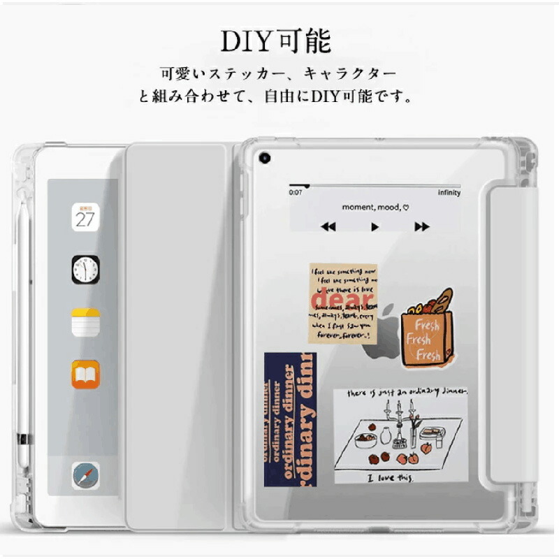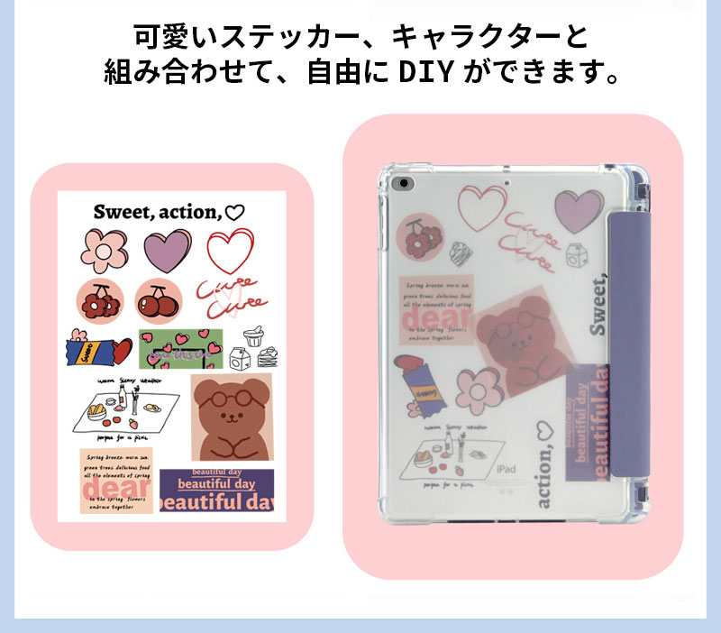 iPad 第11世代 ケース ペン収納付き 漫画のDIYシール付 iPadAir M3 M2 13 11インチ Pro11ケース mini7 mini6 第9世代 第10世代 A17PRO