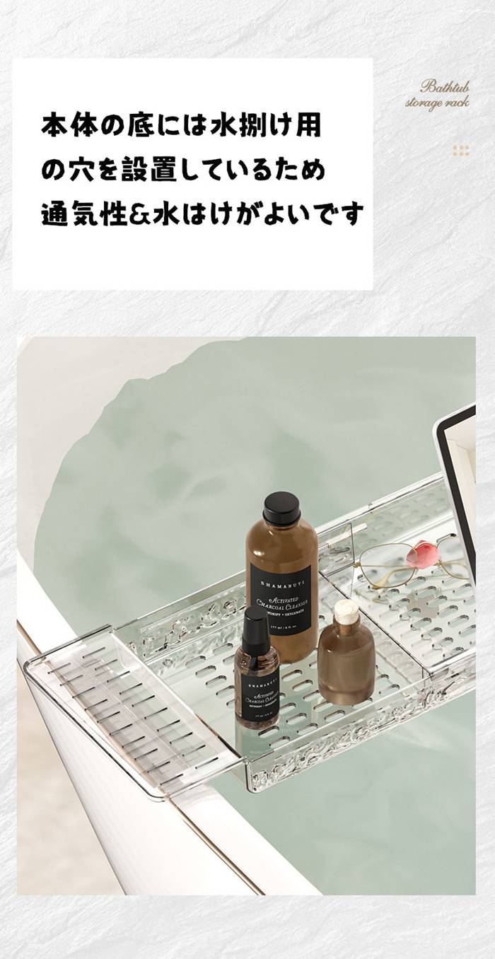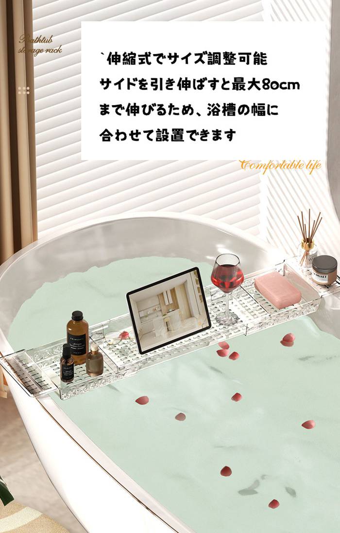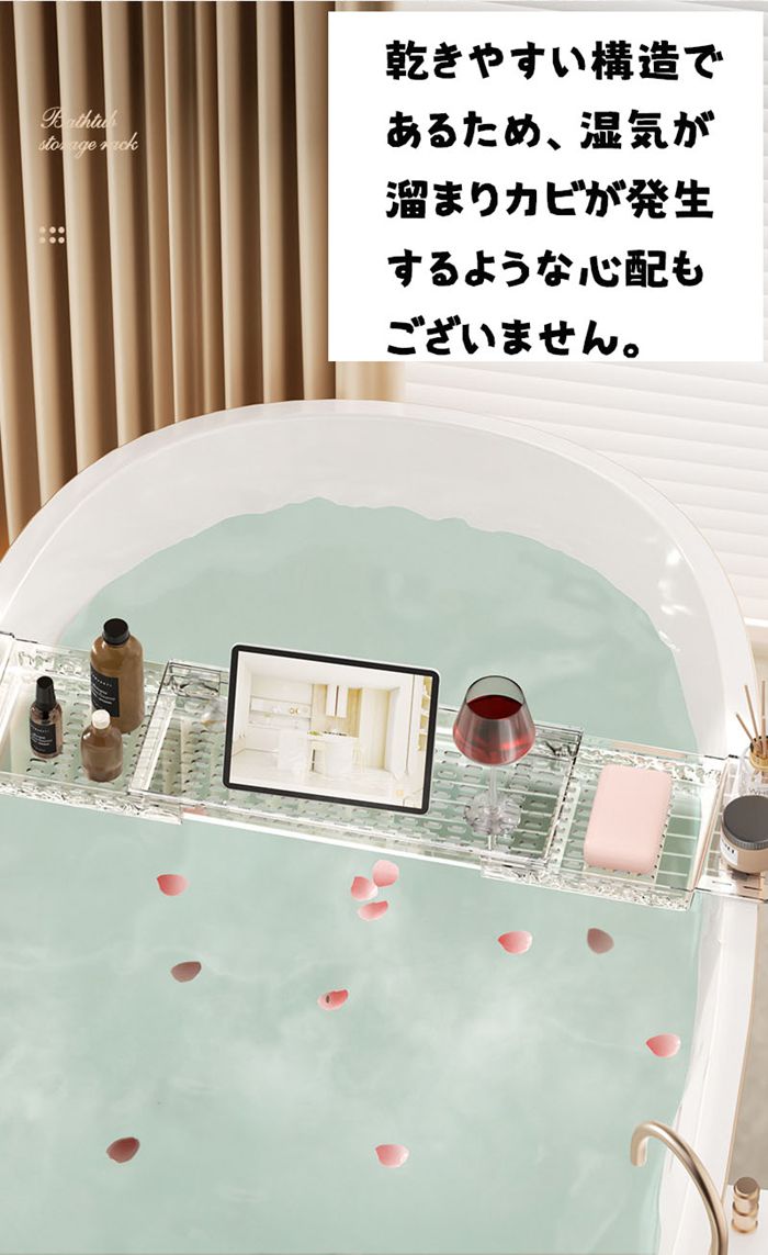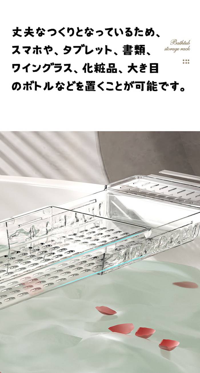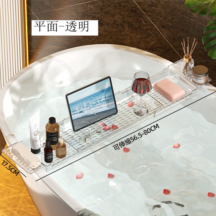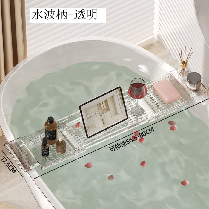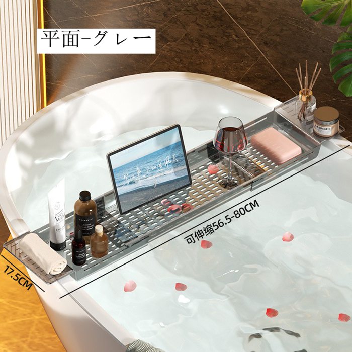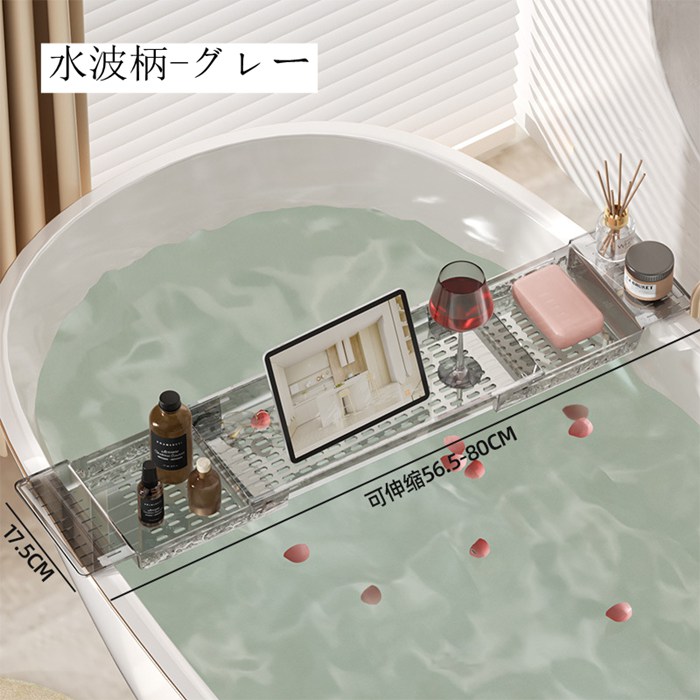 バスタブトレー お風呂 テーブル 伸縮 平面-透明 平面-グレー 水波柄-透明 水波柄-グレー