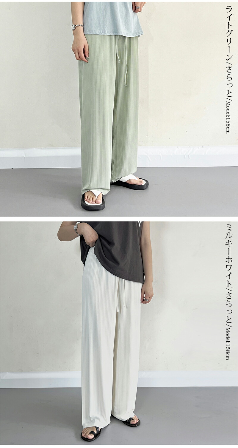ワイドパンツ リブ パンツ レディース 春夏 春 夏 きれいめ 涼しい さらてろ 大きいサイズ 3タイプ選べる イージーパンツ プリーツパンツ ハイウエスト ウエストゴム コーデ 切れるパンツ