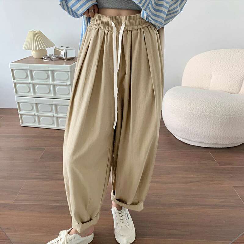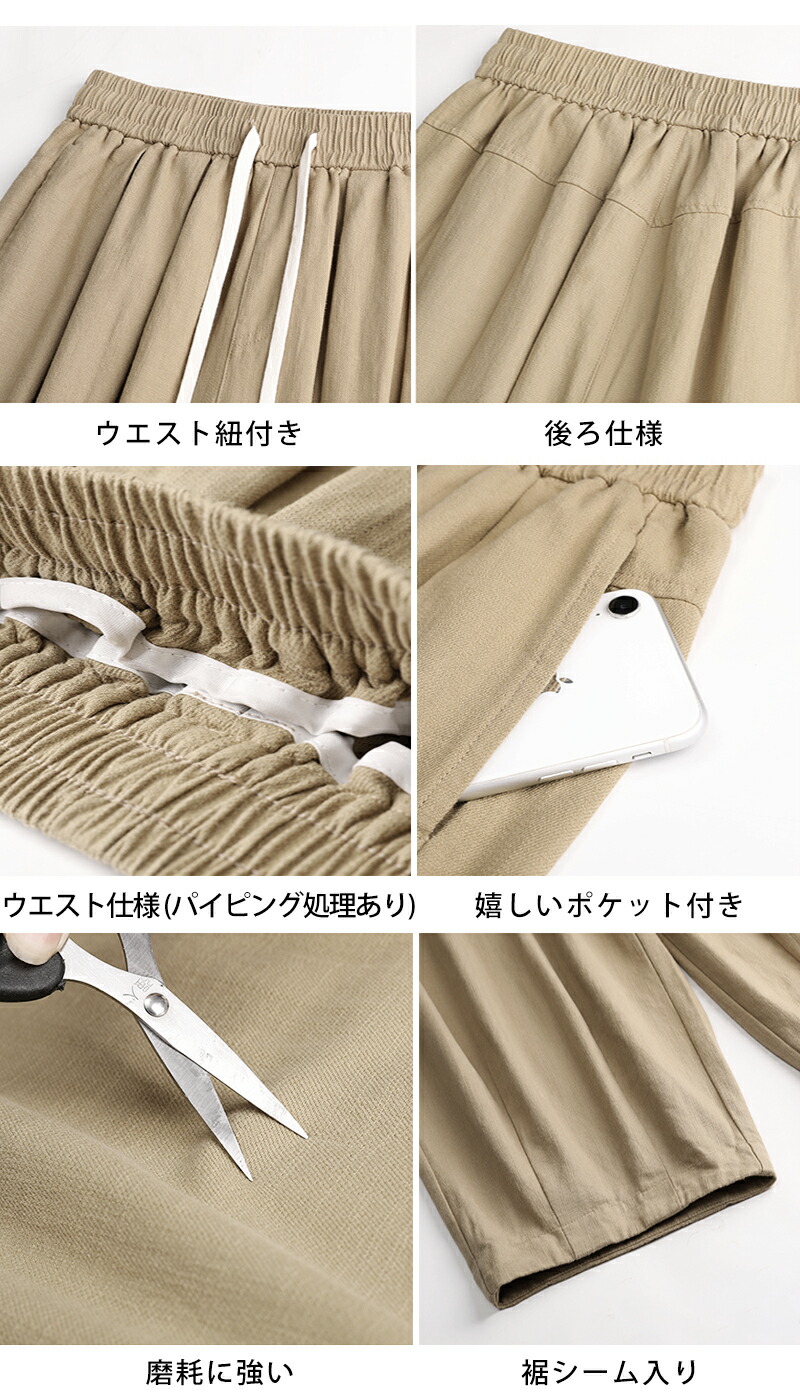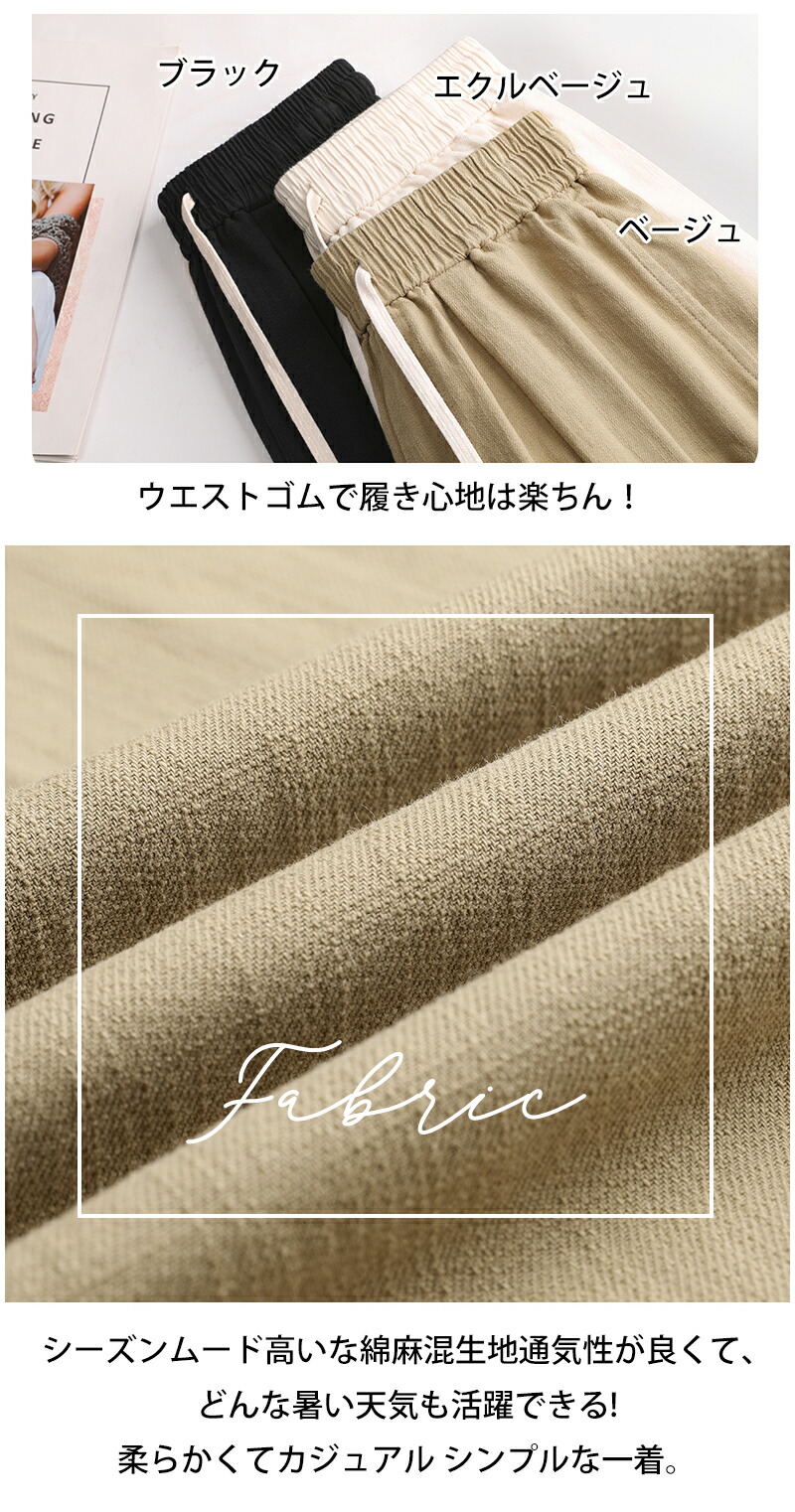 ワイドパンツ レディース きれいめ 春 夏 大きいサイズ ウエストゴム パンツ イージーパンツ 涼しい 綿麻 リネン ボトムス コットン リラックス シンプル ゆったり 体型カ ルーズ