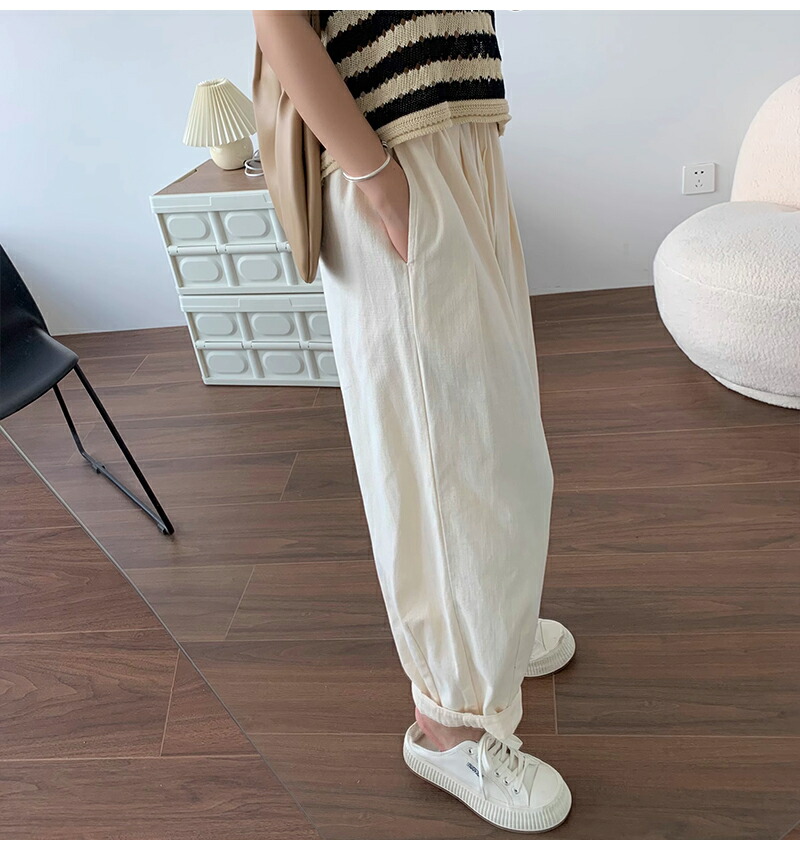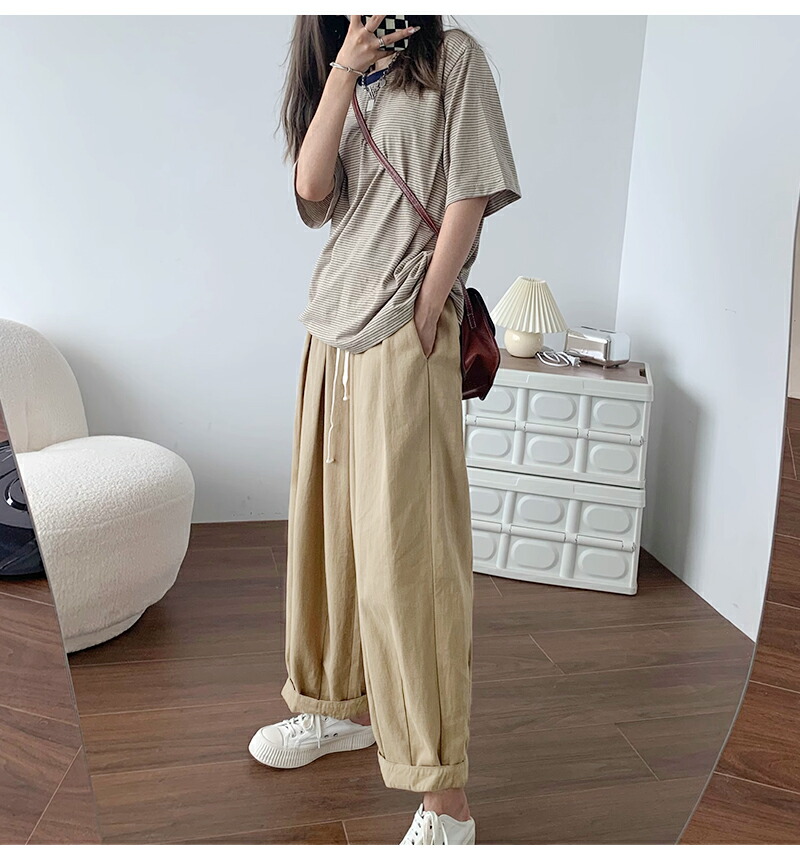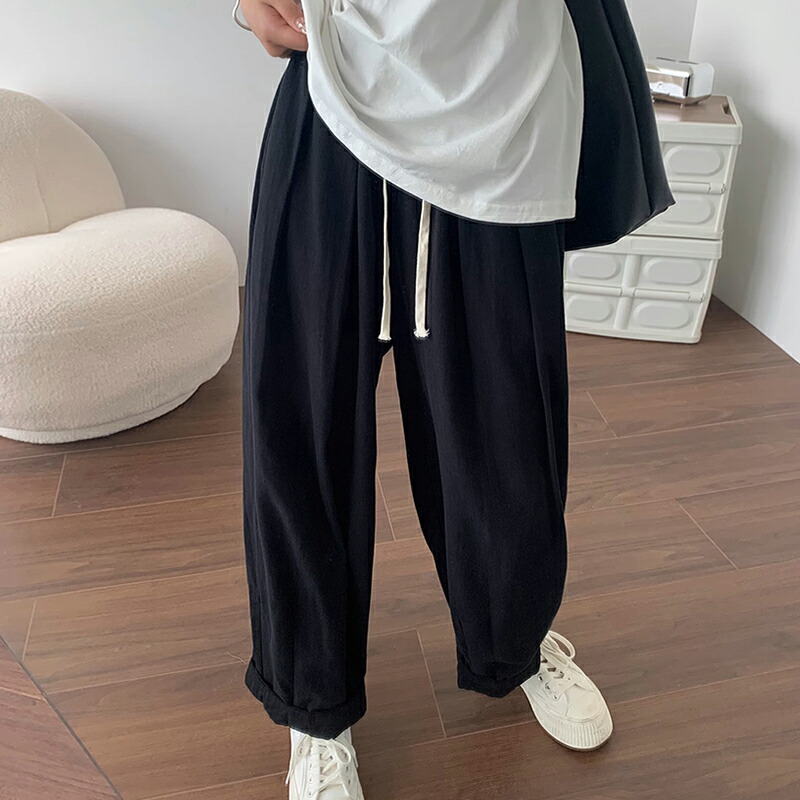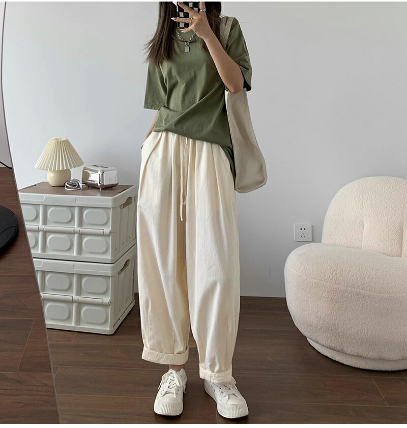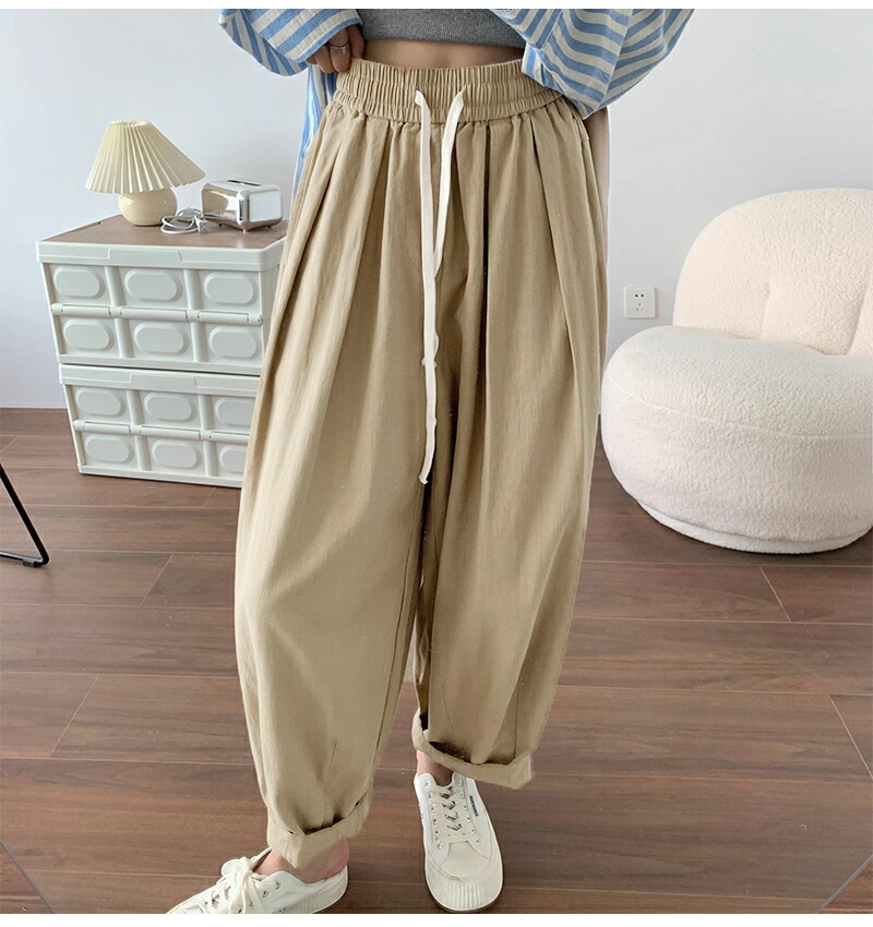 ワイドパンツ レディース きれいめ 春 夏 大きいサイズ ウエストゴム パンツ イージーパンツ 涼しい 綿麻 リネン ボトムス コットン リラックス シンプル ゆったり 体型カ ルーズ