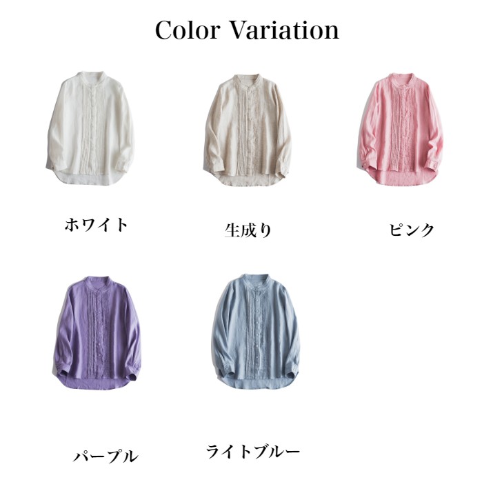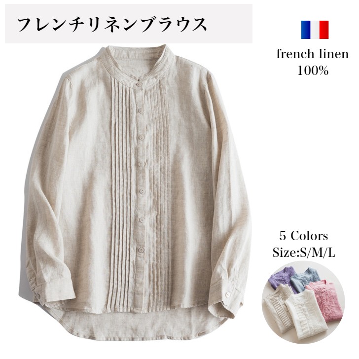 リネンシャツ リネン100% 春夏 春 トップス シャツ ブラウス 続々登場 ホワイト ブルー 生成り パープル ピンク S M L