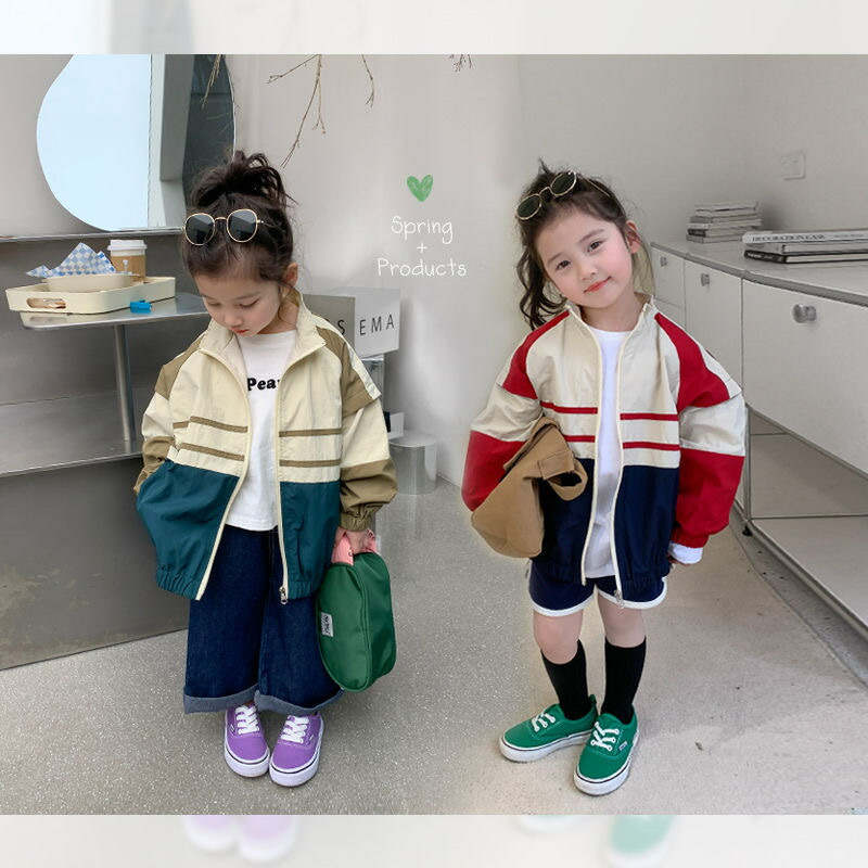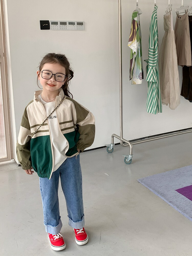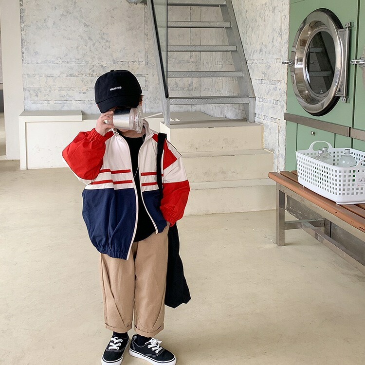 キッズウインドブレーカー 子供服 男女 キッズ コート ジャケット 続々登場 レッド×ネイビー グリーン×カーキ 80cm 90cm 100cm 110cm 120cm 130cm 140cm