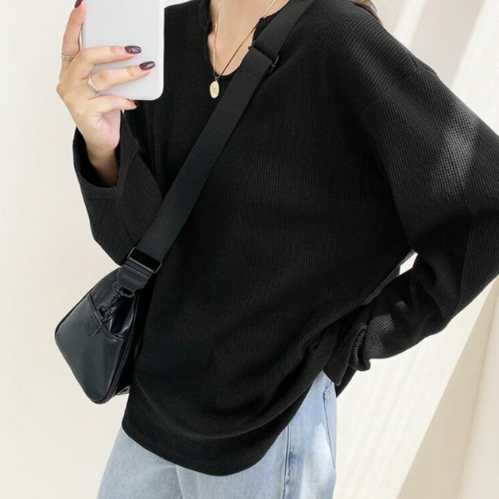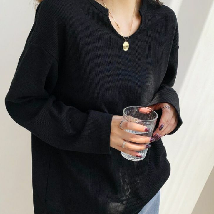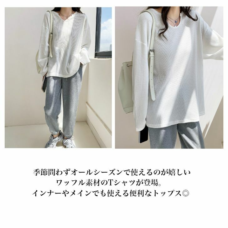 ワッフルロンT トップス カットソー トップス Tシャツ カットソー 特集 ブラック ホワイト Sサイズ Mサイズ Lサイズ