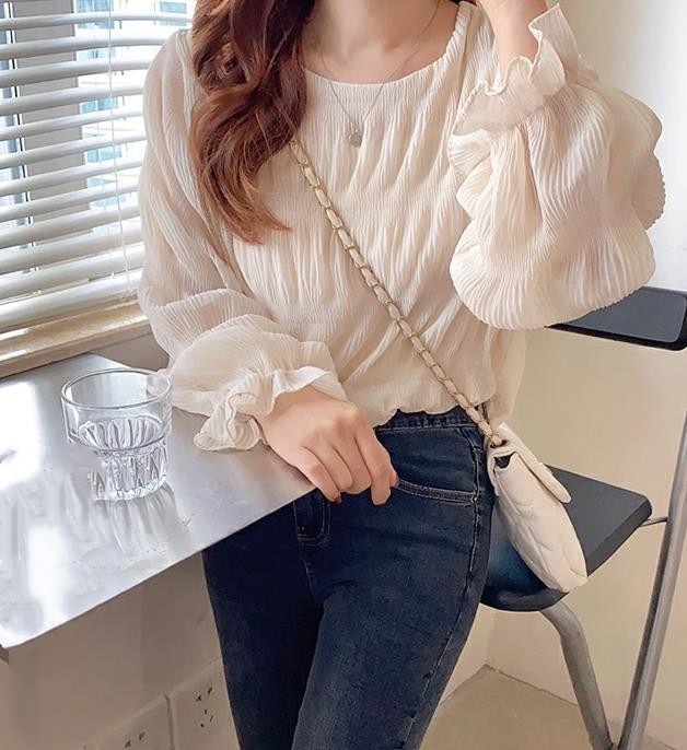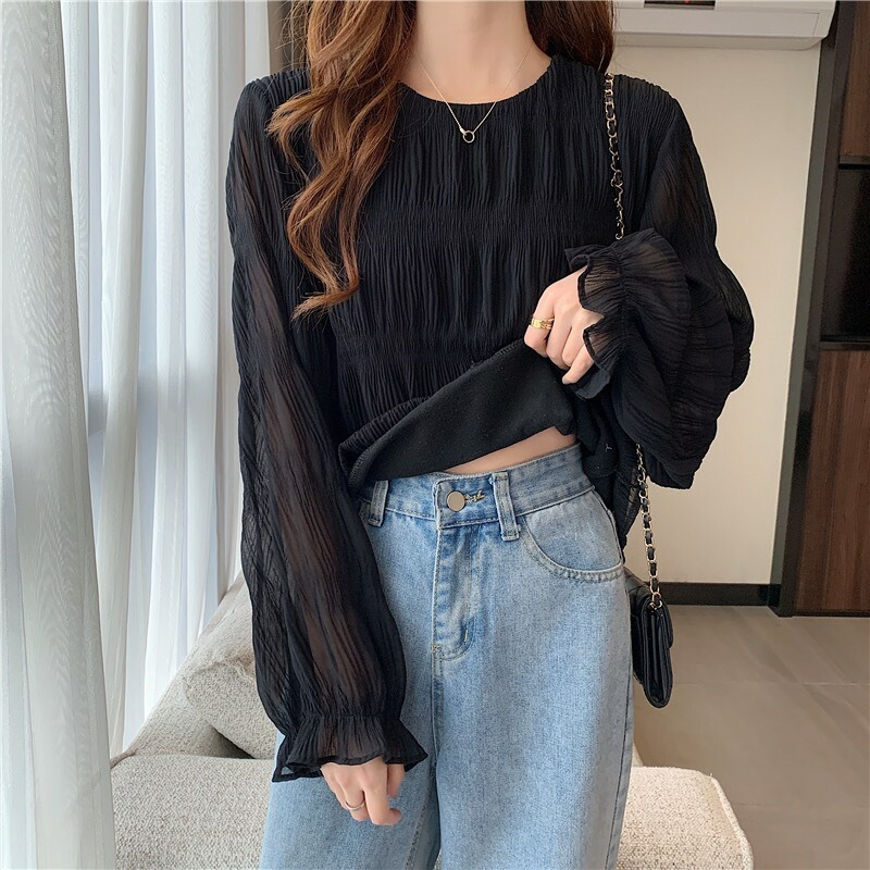 シフォンブラウス シアーブラウス ボリューム袖