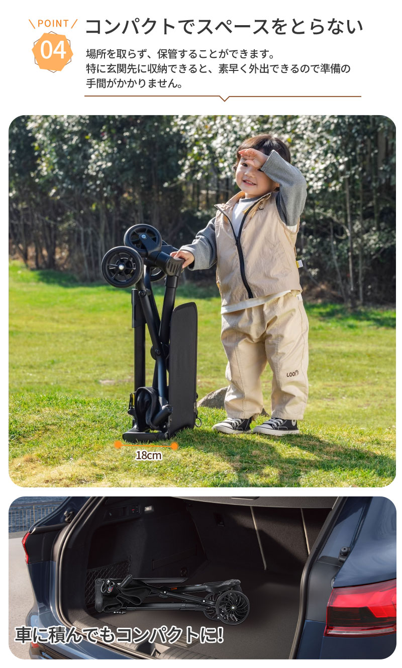 1歳~3歳のお子様に対応。遊園地や旅行など、様々なシーンで活躍するセカンドベビーカーに最適!