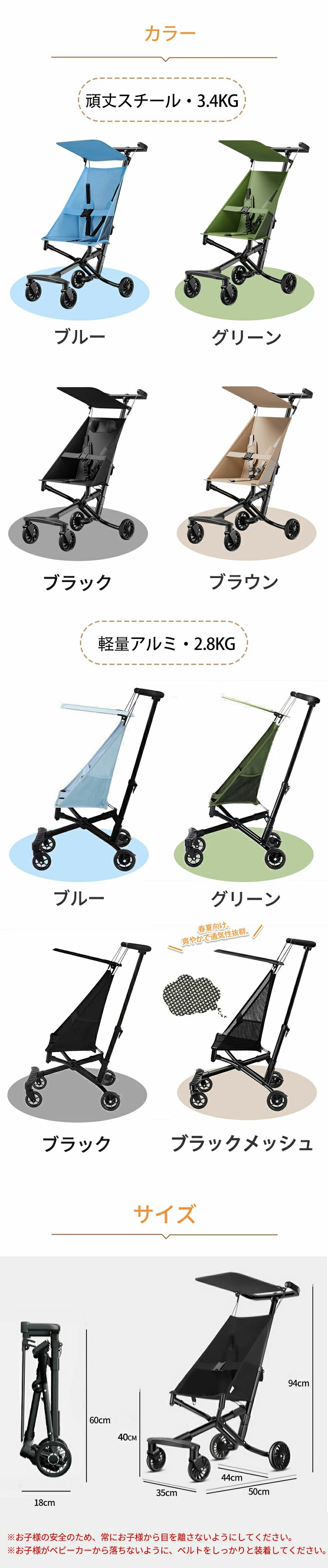 コンパクト ベビーカー 軽量 折りたた ベビー ベビーカー ベビーカー本体 新登場! 軽量アルミ・2.8kg 頑丈スチール・3.4kg ブラック ブラウン グリーン ブルー ブラックメッシュ