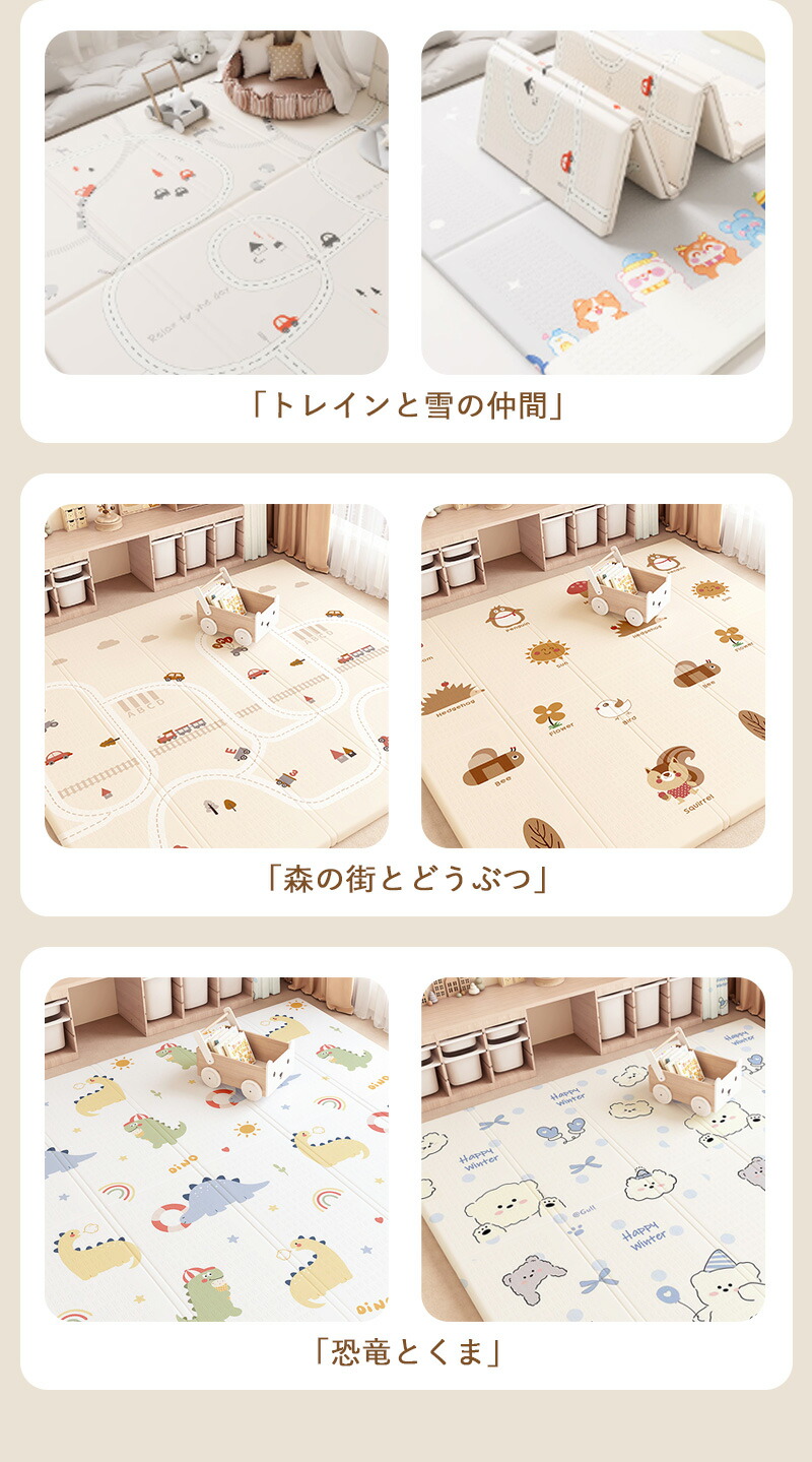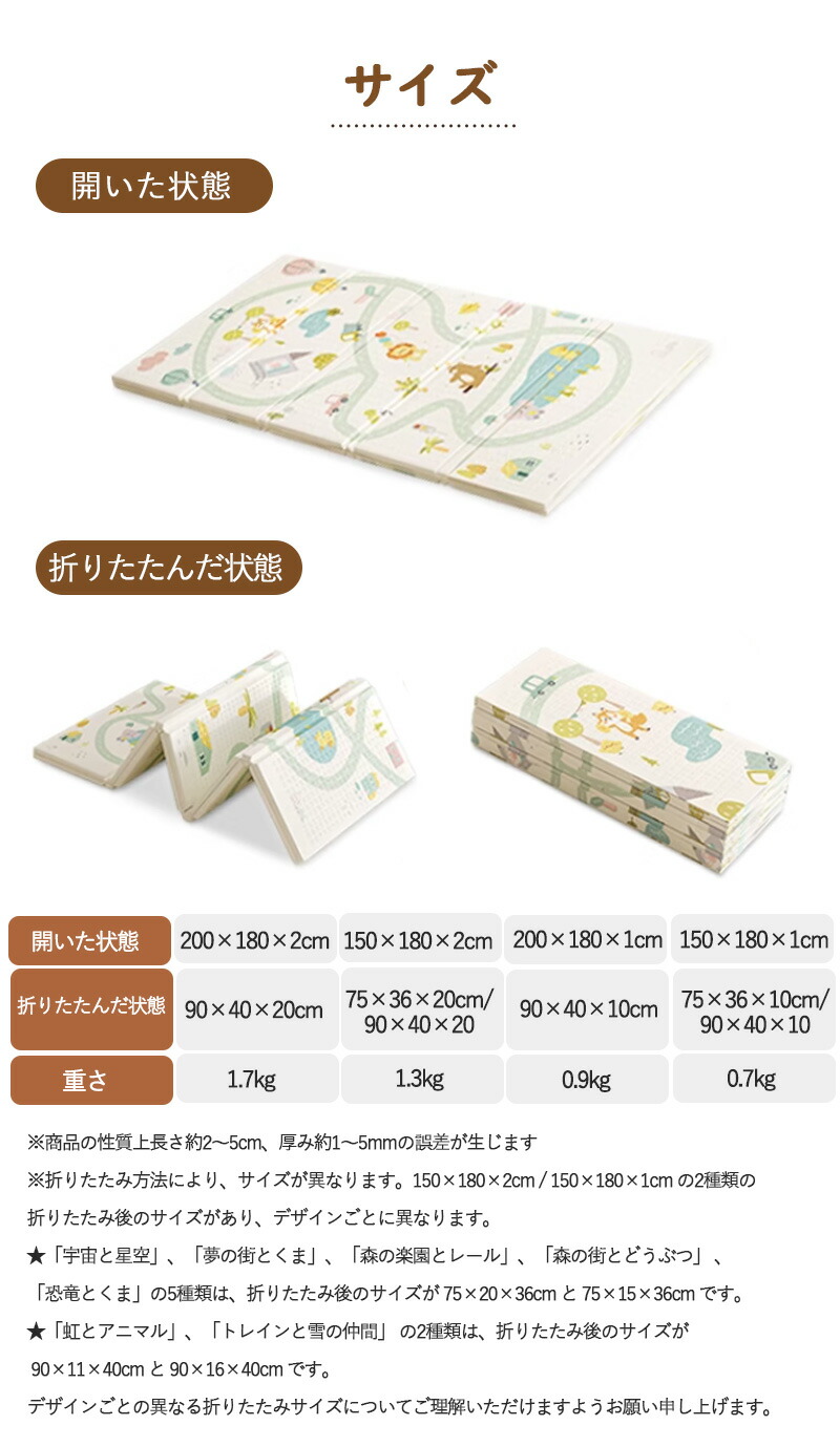 プレイマット 折りたたみ ベビー 幼稚 宇宙と星空 夢の街とくま 森の楽園とレール 森の街とどうぶつ 虹とアニマル トレインと雪の仲間 恐竜とくま 180*200*2cm 180*200*1cm 150*180*2cm 150*180*1cm