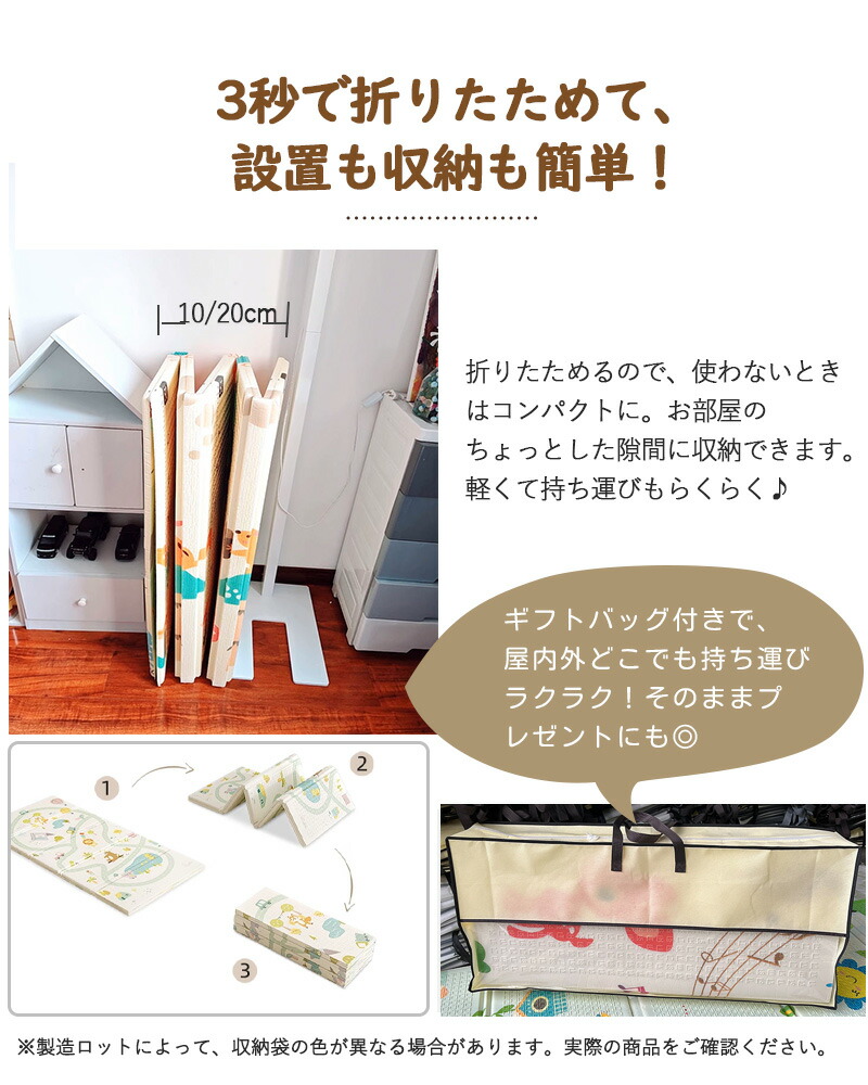 【かわいい14柄 ギフト用手持ちバック】プレイマット 折りたたみ ベビー 両面仕様 道路 防水 赤ちゃん 抗菌 防汚 防音 ベビーマット 子供部屋 幼稚園 保育園 男の子 女の子 コンパクト 防音マット お昼寝マット クリスマス