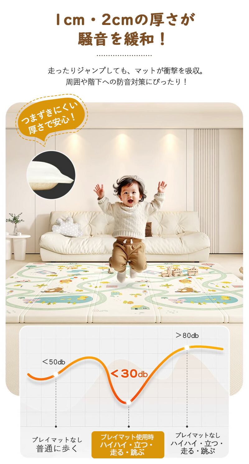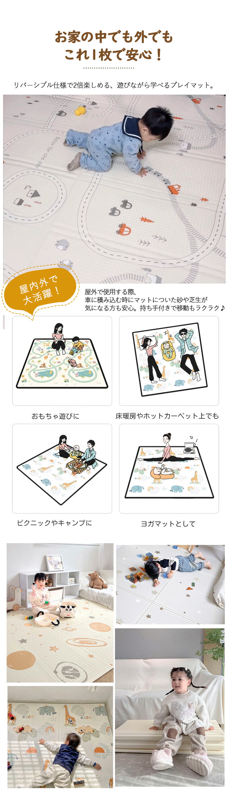 プレイマット 折りたたみ ベビー 幼稚園 両面仕様 道路 防水 赤ちゃん 抗菌 防汚 防音 ベビーマット 子供部屋 保育園 男の子 女の子 コンパクト お昼寝マット 床暖房対応 長方形 防音マット