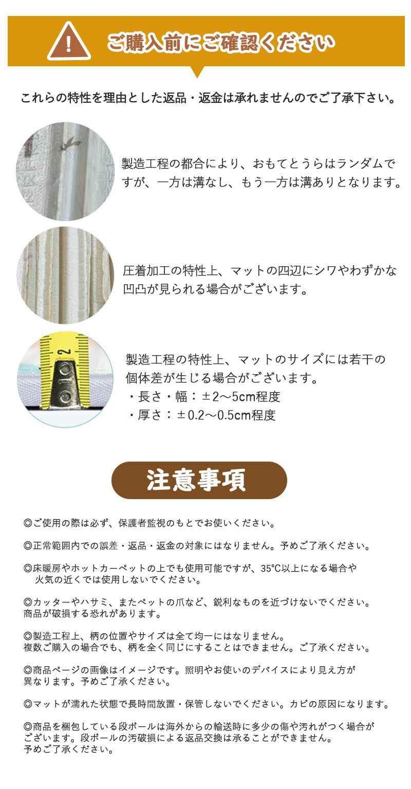 製造工程の特性上、マットのサイズには若干の個体差が生じる場合がございます。予めご了承ください。