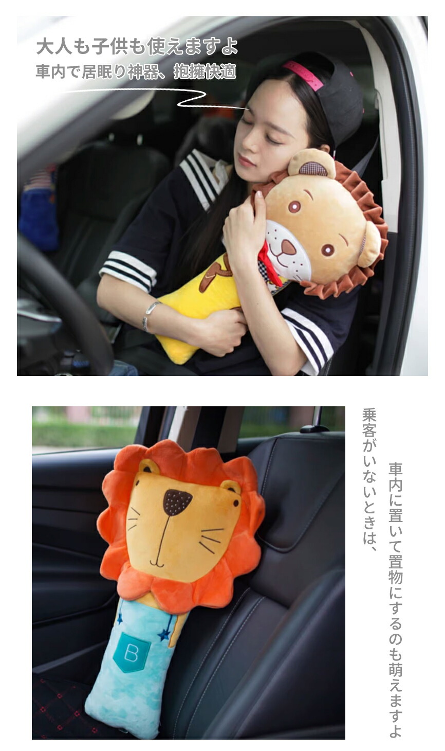 シートベルト クッション 枕 カバー かわいいぬいぐるみ枕付き ベルトクッション 子供用 キャラクター 車用 首かっくん防止 ベルトカバー 旅行 洗える 取り外し可能カバー 安全 対策 お出かけ ドライブ 首保護 携帯枕 車用枕 寝る