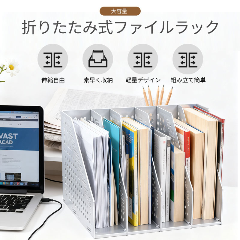 ファイルボックス A4 折りたたみ式 文房具 事務用品 机上収納 整理用品 ブックスタンド 続々登場 ホワイト グレー 三つ折り 四つ折り
