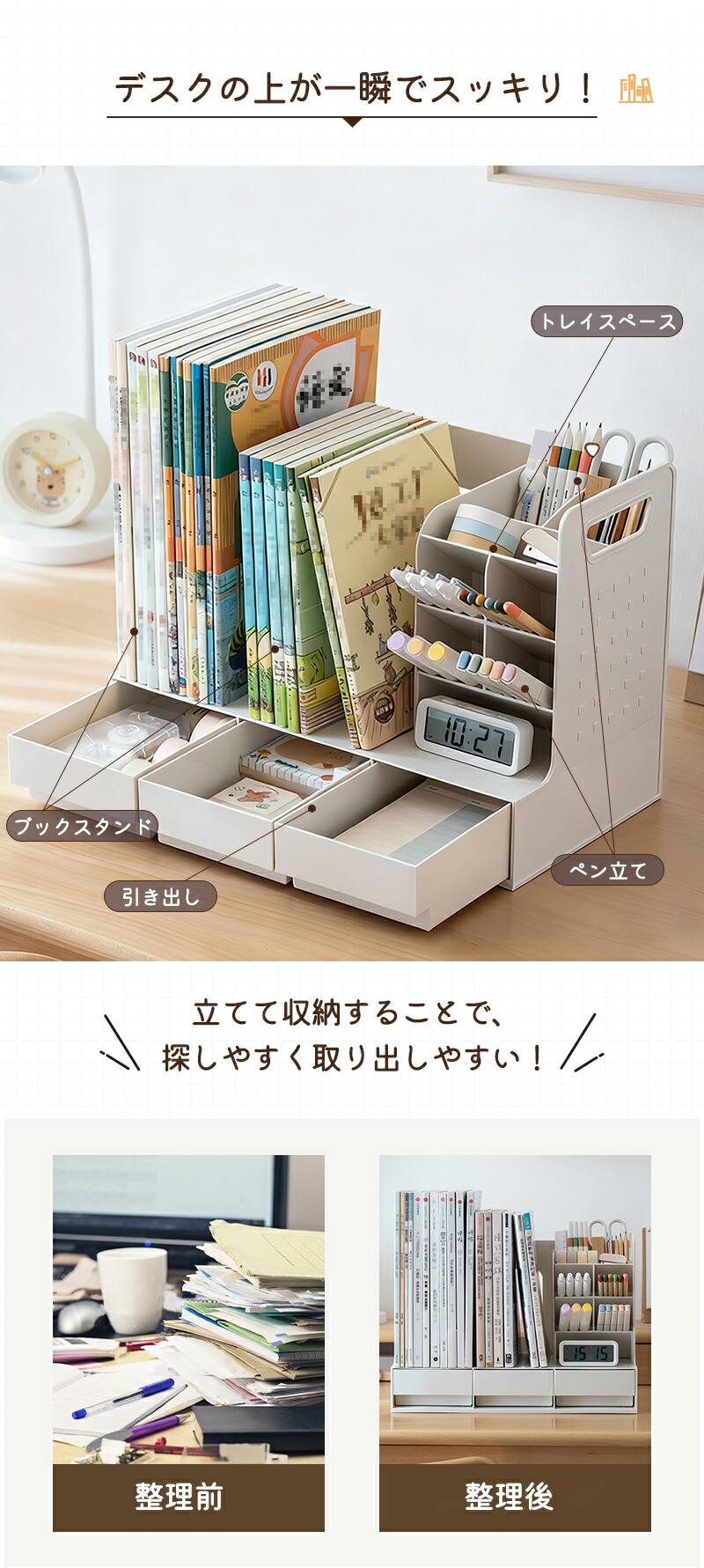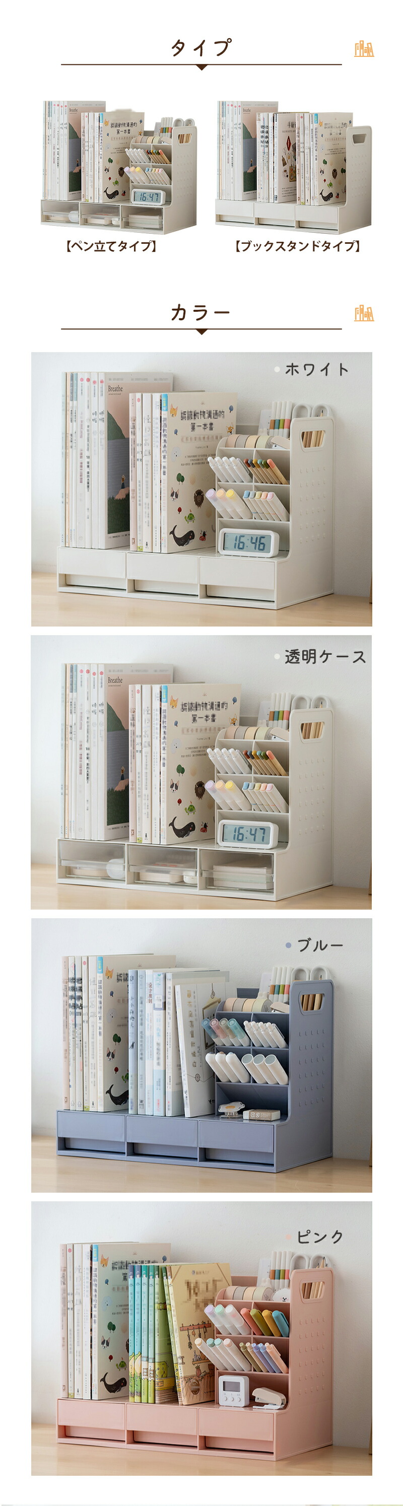 ファイルボックス 卓上 卓上収納 ブッ 文房具 事務用品 机上収納 整理用品 ブックスタンド 超目玉商品 ペン立てタイプ ブックスタンドタイプ ホワイト 透明ケース ピンク ブルー
