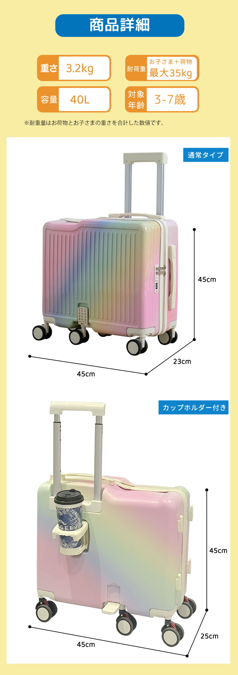 子供用 キャリーケース 乗れる キッズ キッズ バッグ ランドセル スーツケース キャリーバッグ 通販 通常タイプ カップホルダー付き ホワイト ブルー ピンク カラフル イエロー パープル ブラック グレー ミント