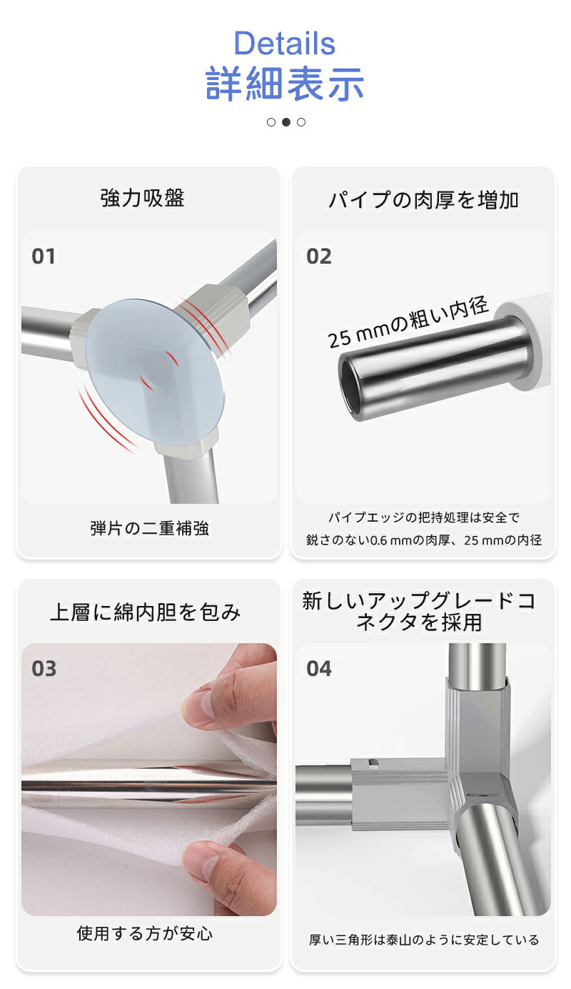 工具不要で、置くだけで簡単に設置可能。滑り止め付きで倒れにくいデザイン。収納バッグも付属して持ち運びにも便利。