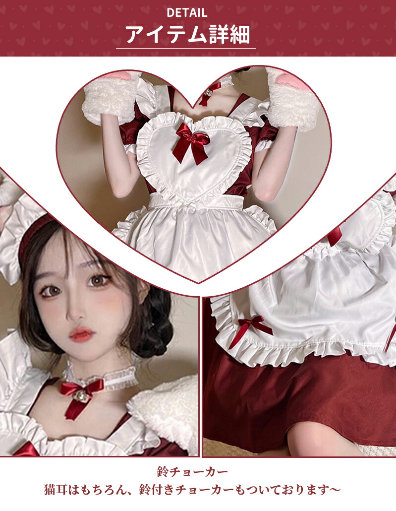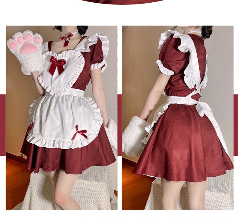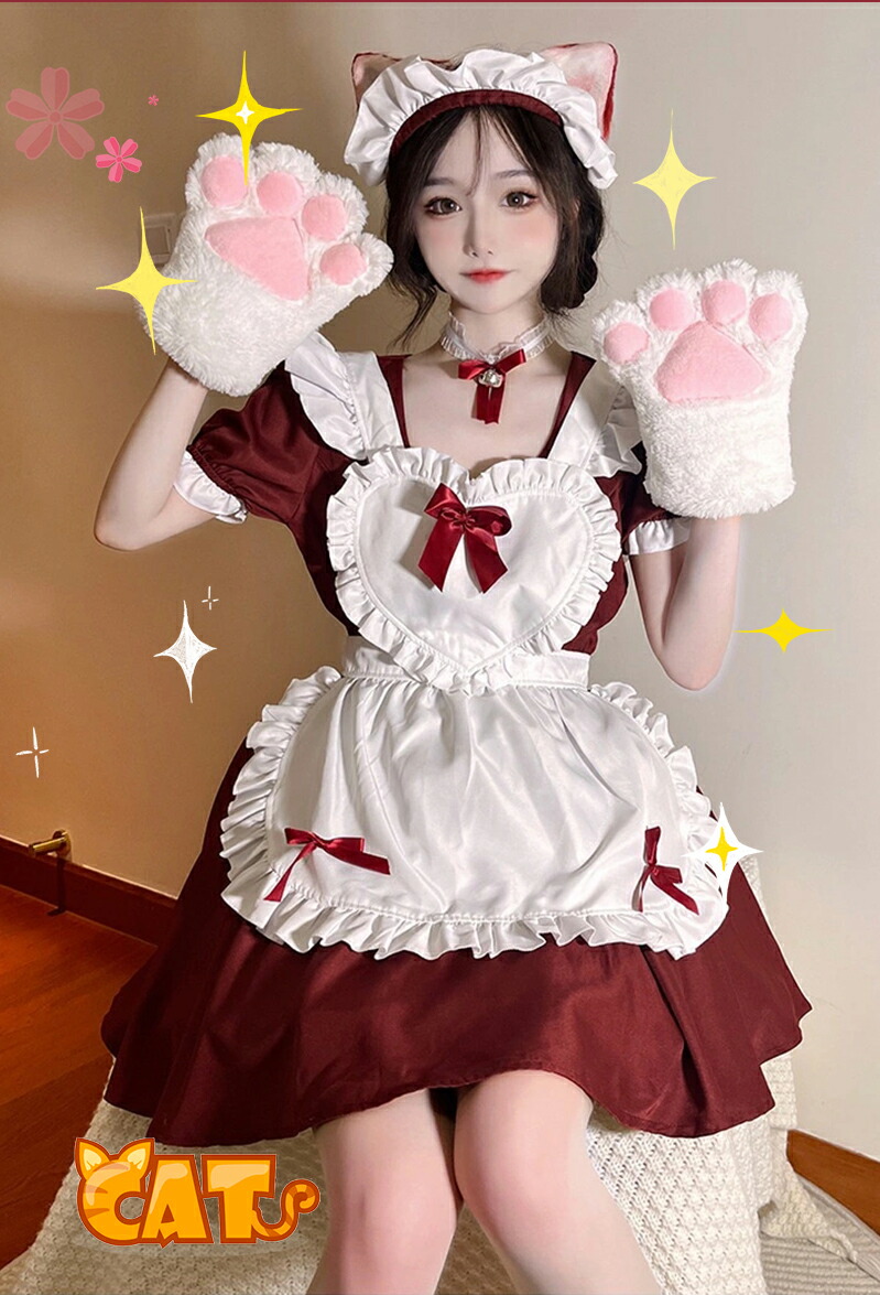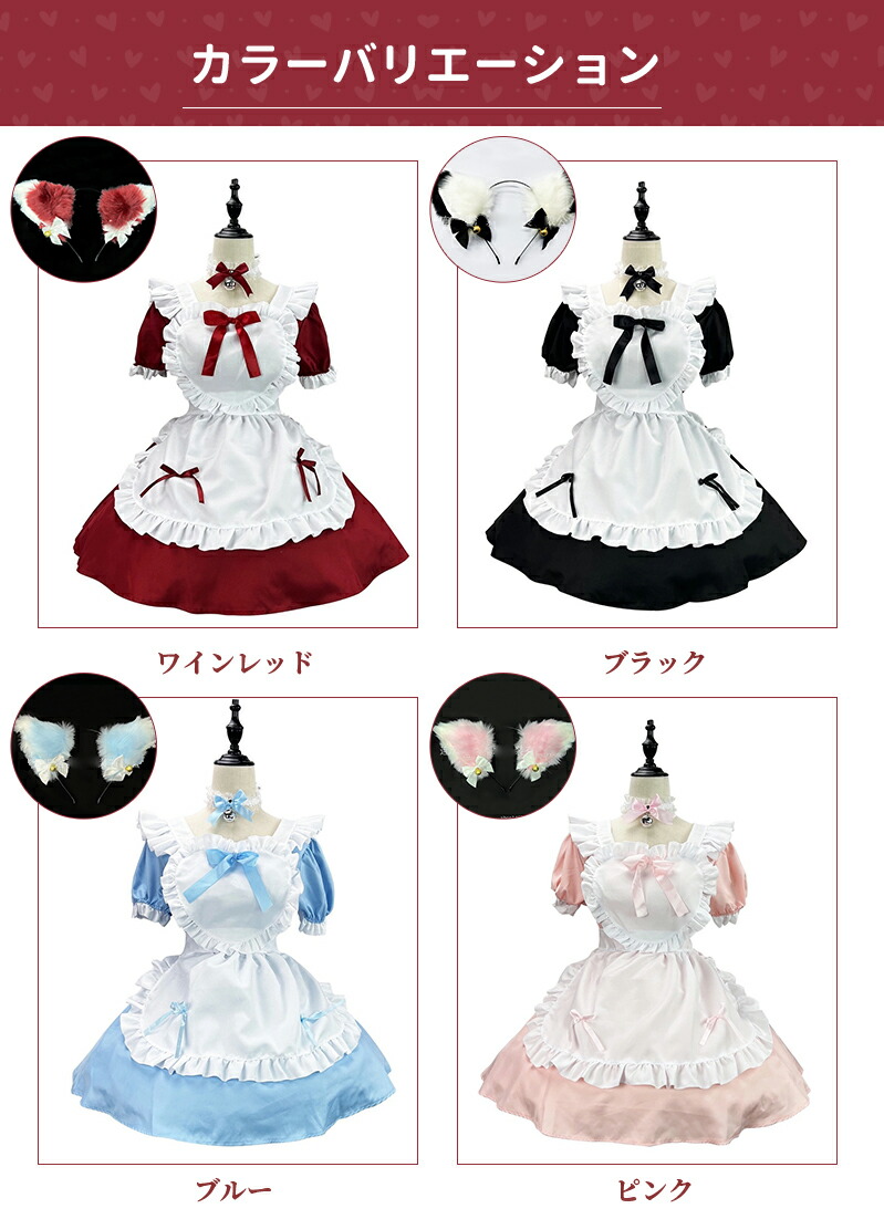 メイド服 コスプレ 猫 ネコ耳 かわい ホビー 新登場! ワインレッド ライトブルー キャンディピンク クラシックブラック S M L XL 2XL 3XL 4XL 5XL