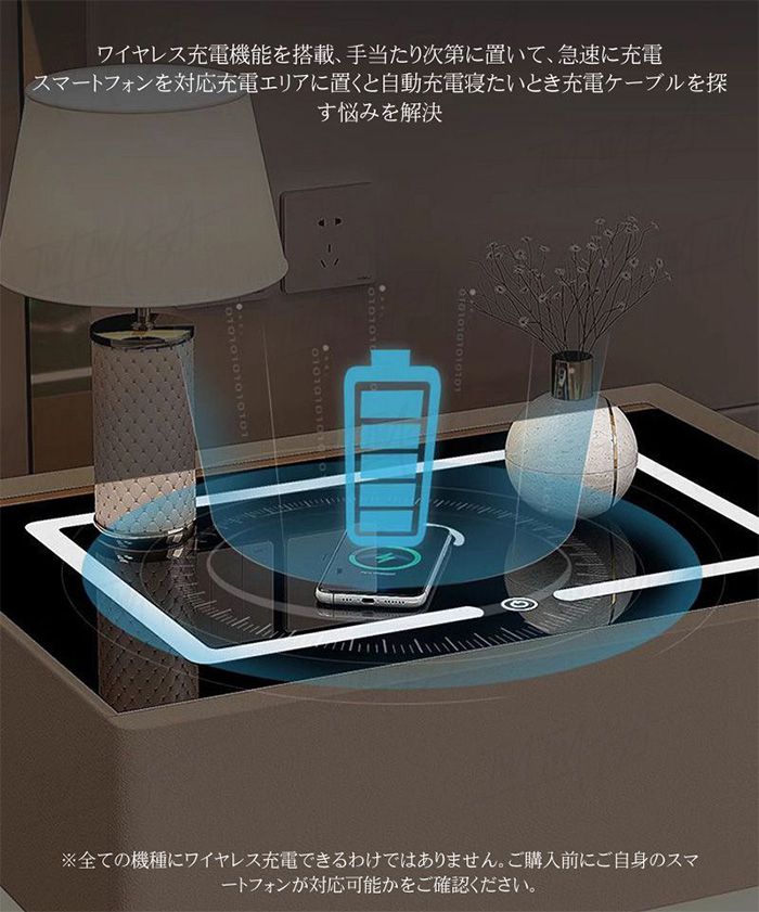 サイドテーブル ナイトテーブル 多機能 ホワイト ダークグレー ライトグレー ベージュ ワイヤレス充電 ワイヤレス充電+金庫 ワイヤレス充電+金庫+スピーカー