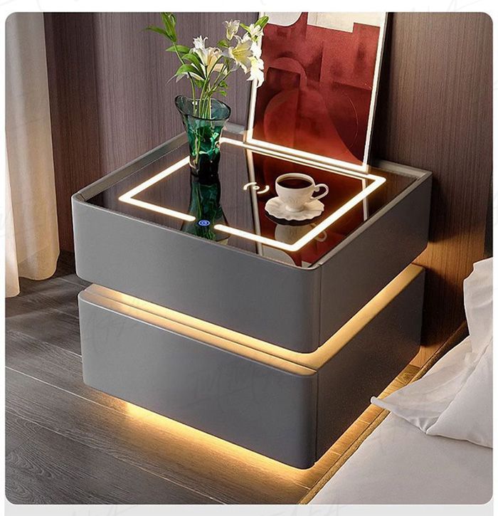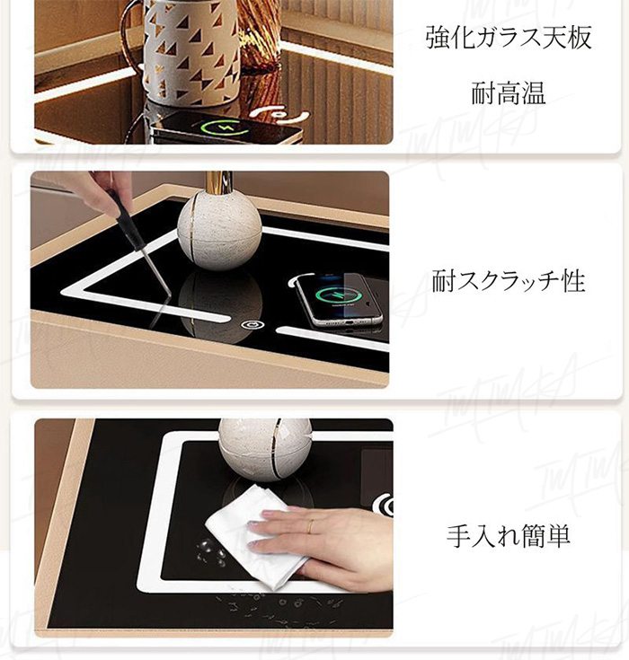 ・【6つ機能】センサーライト、ワイヤレス充電、ガラスパネル3色光照明、デジタルロック、Bluetoothスピーカー、多層収納!