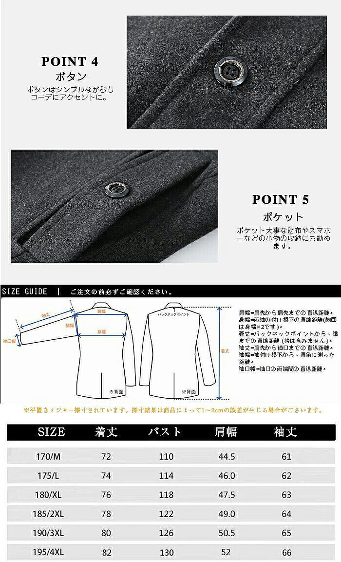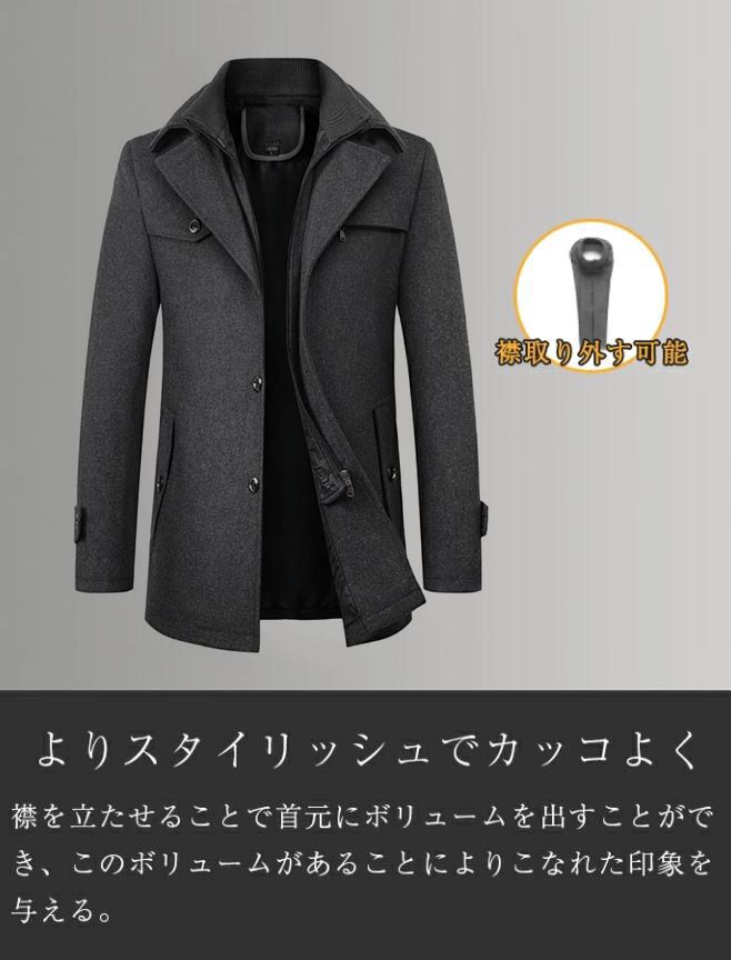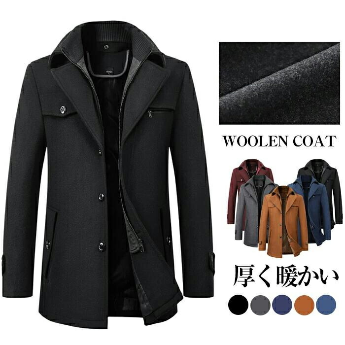 ウール混M~4XLチェスターコート メンズ コート チェスターコート ピーコート ビジネスコート 通勤 メンズコートロングコートアウターコート 大きいサイズ スリム 暖か ボタン留めファスナー