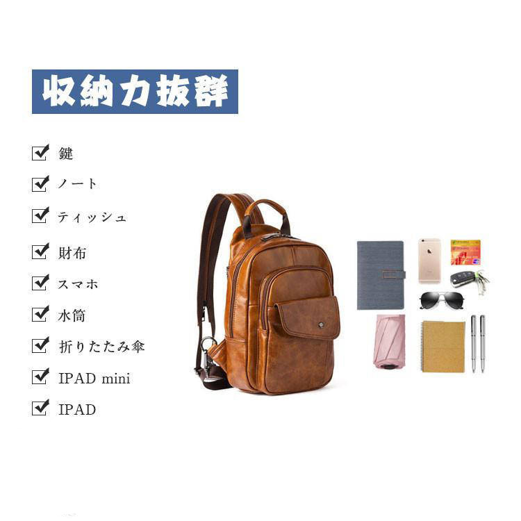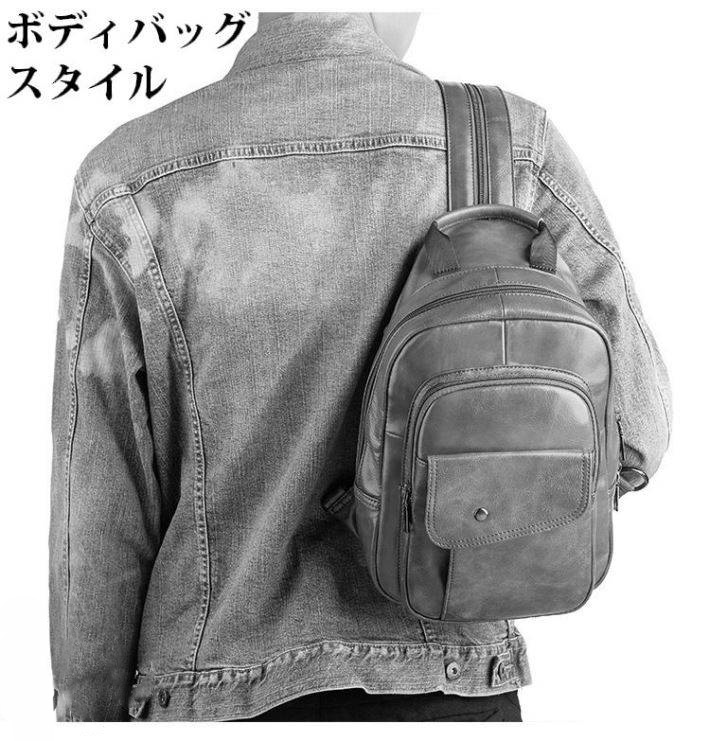 ボディバッグ メンズ 本革 レザー 最上級の天然牛革 2way レザーバッグ ショルダーバッグ ワンショルダー 大きめ リュックタイプ ボディバック ビジネス 斜めがけ