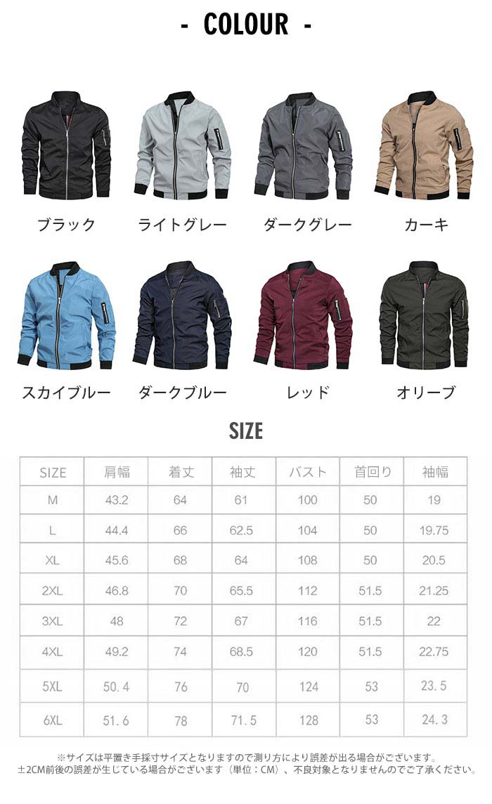 M~6XL フライトジャケット メンズ アウター おしゃれ カジュアル ジャケット 春 秋 冬 防風 ゆったり 大きいサイズ 立ち襟 ブルゾン ミリタリー ライトアウター メン 無地