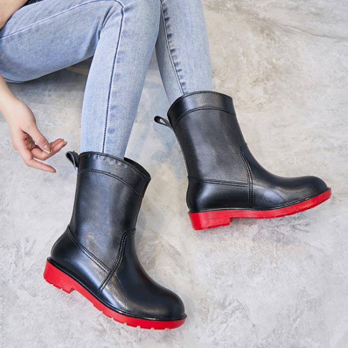 22.5~25.5cm レインブーツ レディース靴 レインシューズ 長靴 ブーツ 特集 ブラック+レッド ブラック キャメル ブライトグリーン ピンク 35(22.5cm) 36(23cm) 37(23.5cm) 38(24cm) 39(24.5cm) 40(25cm) 41(25.5cm)