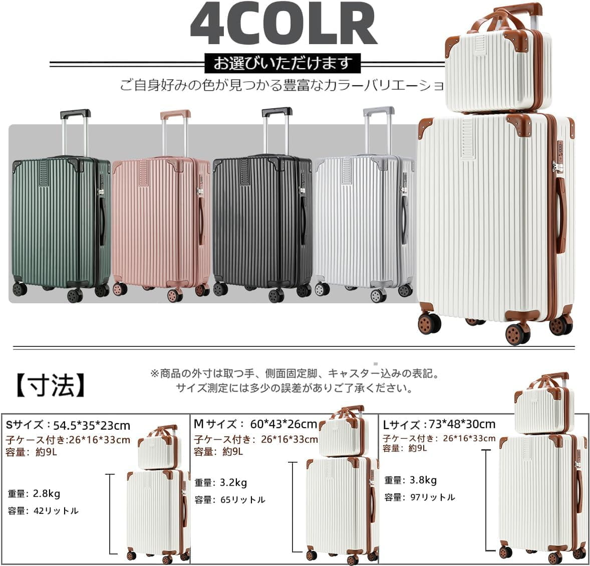 最軽量 キャリーケース スーツケース 旅行用品 旅行用小分け容器 新登場! はくしょく ブラックコーヒー色 Sサイズ(小) Mサイズ(中サイズ) Lサイズ(大きいサイズ)