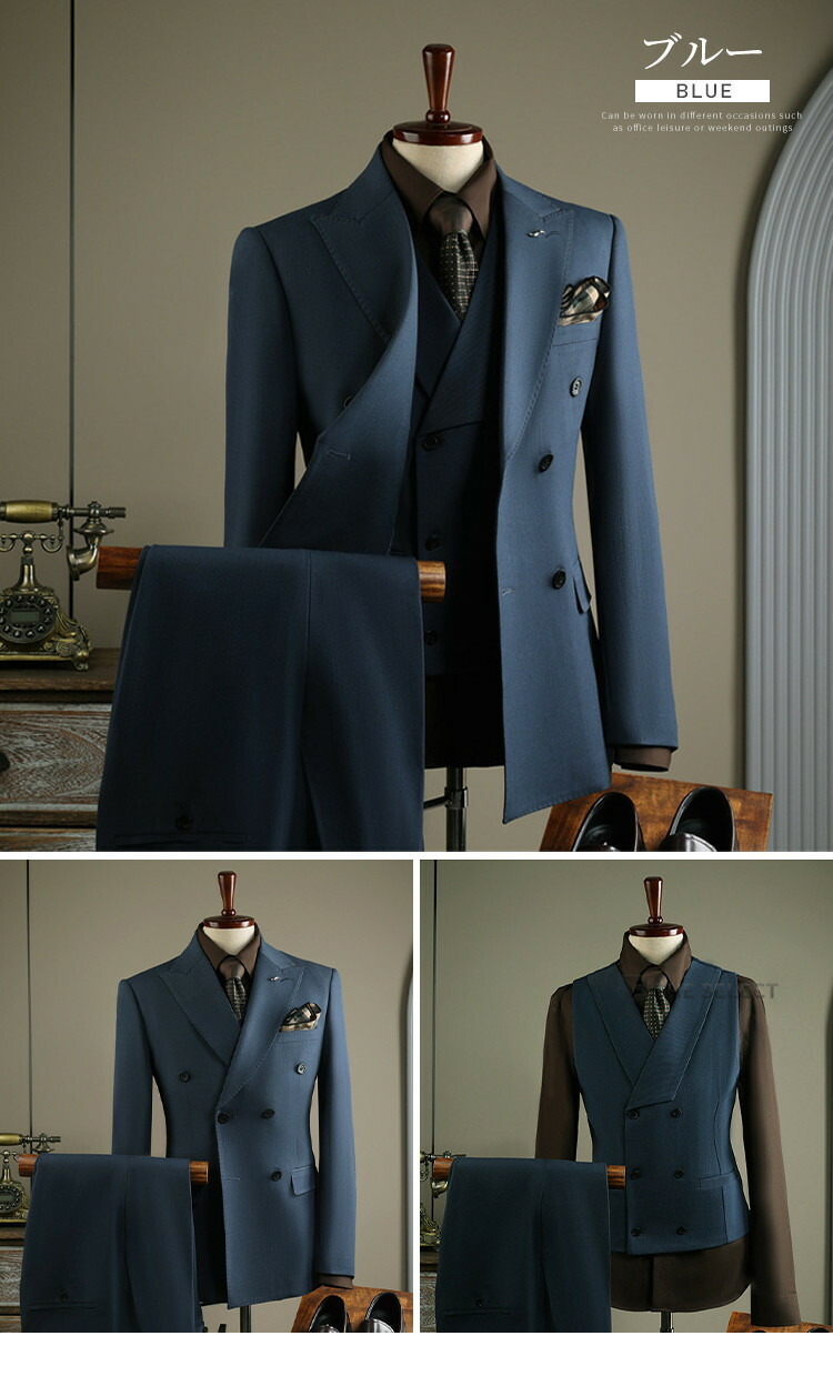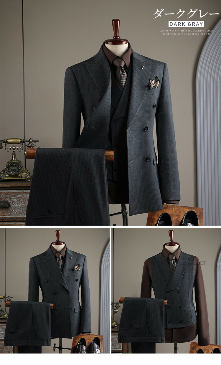 ダブルスーツ メンズスーツ スリーピー スーツ セットアップ スーツ 人気 M L XL 2XL 3XL 4XL 2点セット/黒 2点セット/コーヒー 2点セット/ブルー 2点セット/ダークグレー 3点セット/黒 3点セット/コーヒー 3点セット/ブルー 3点セット/ダークグレー ベスト/コーヒー