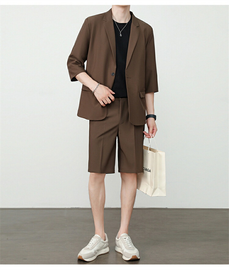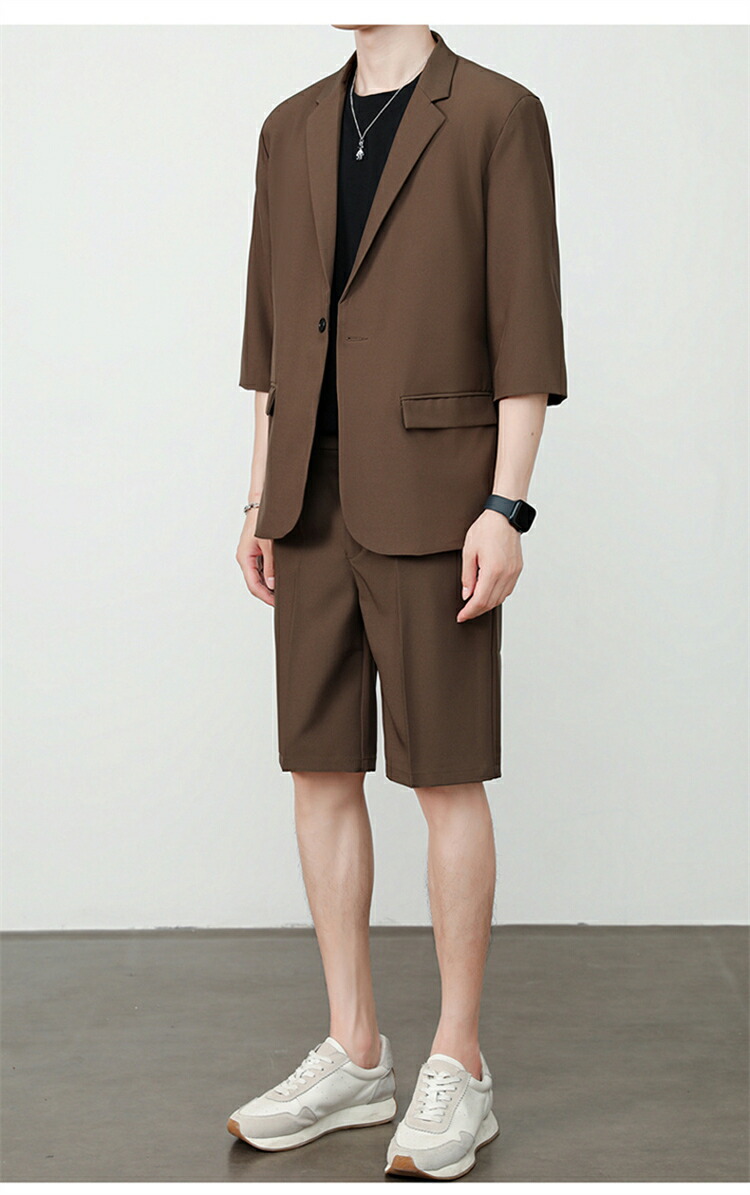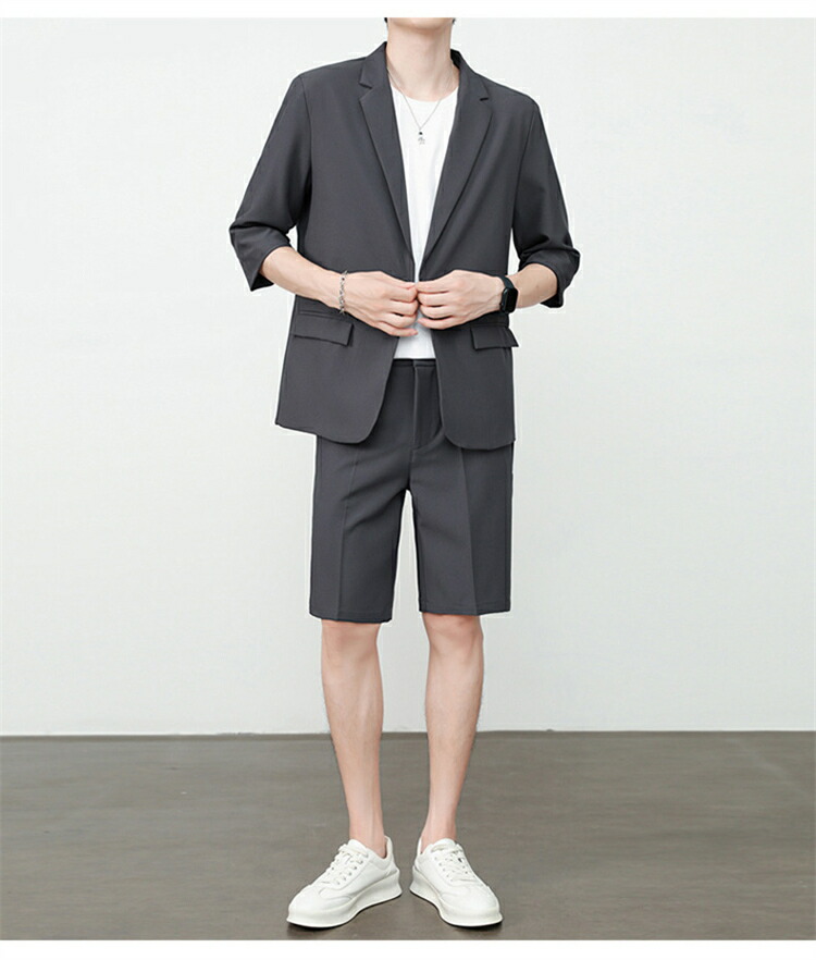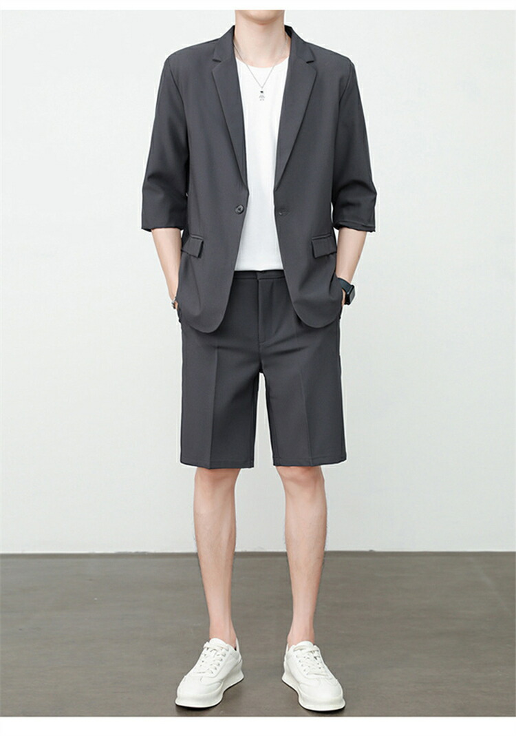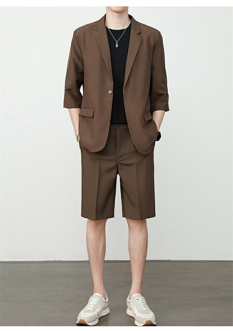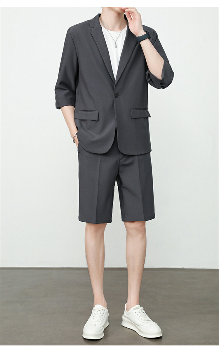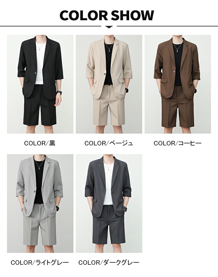 サマースーツ セットアップ 七分袖 ス スーツ セットアップ スーツ 人気 M L XL 2XL 3XL 黒 ベージュ コーヒー ライトグレー ダークグレー