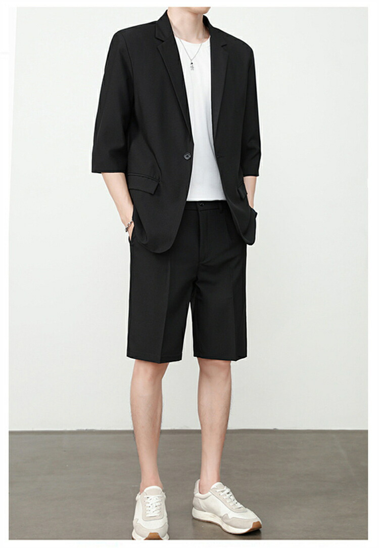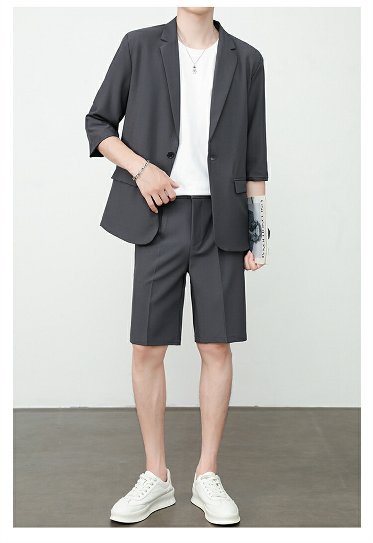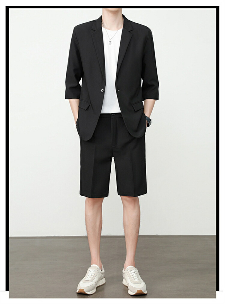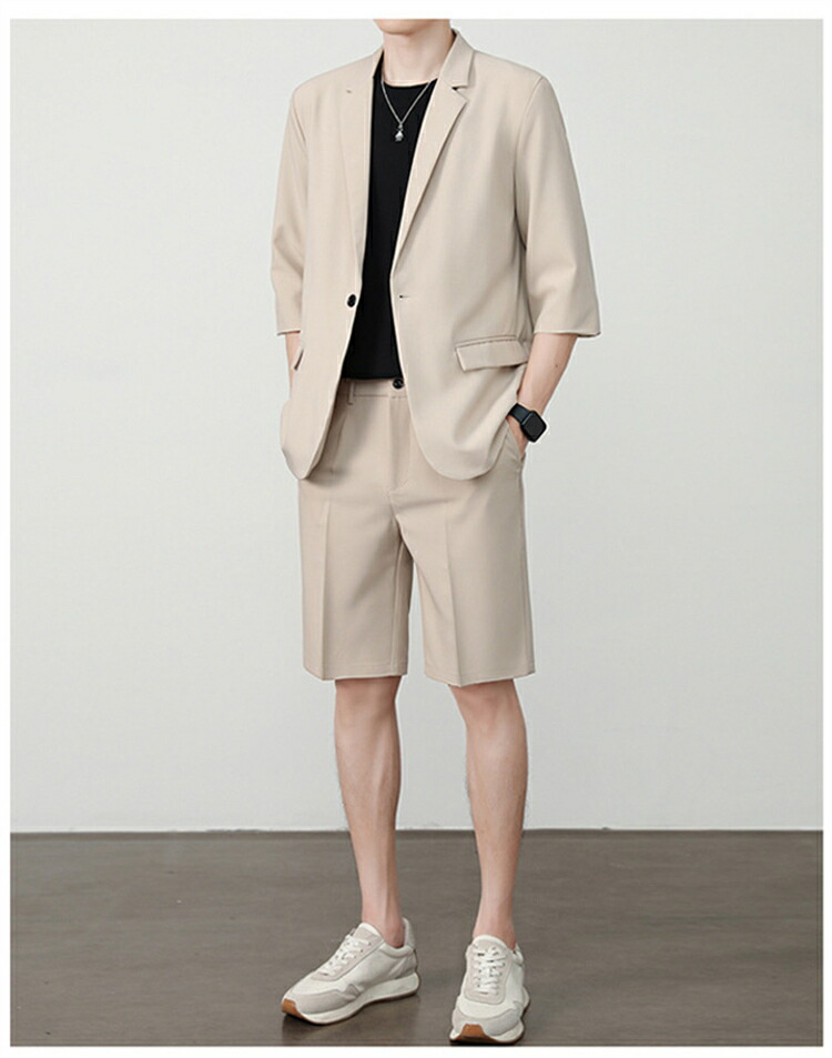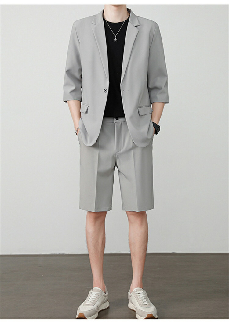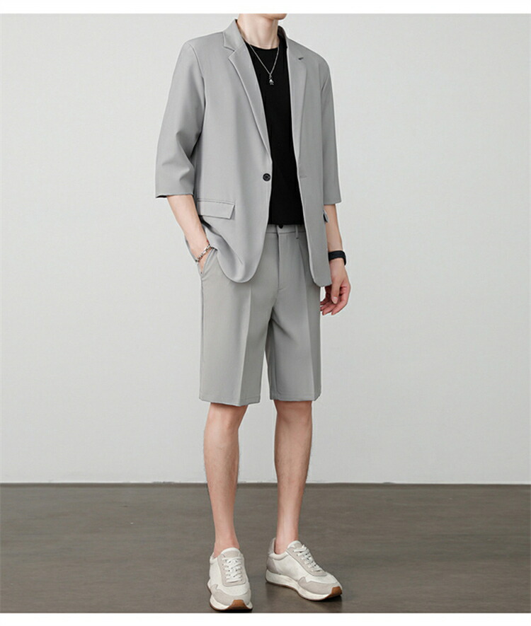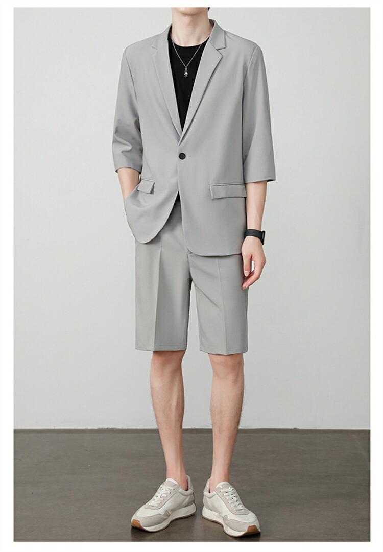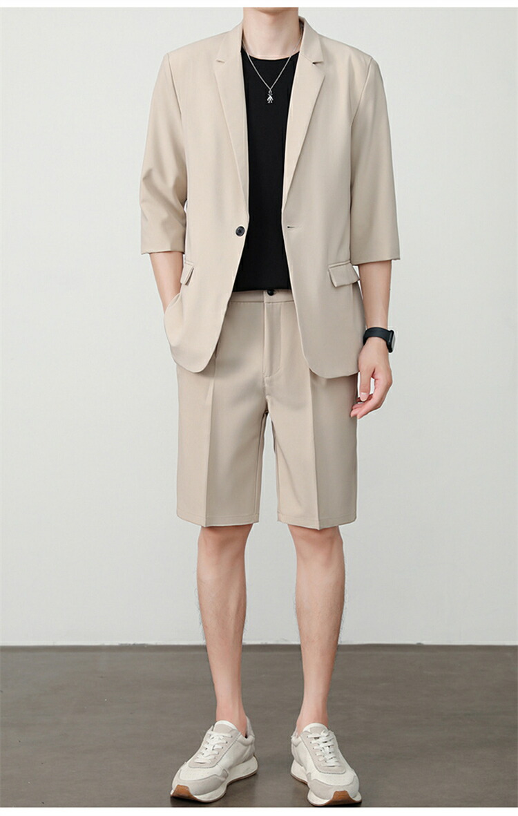 サマースーツ セットアップ 七分袖 ス スーツ セットアップ スーツ 人気 M L XL 2XL 3XL 黒 ベージュ コーヒー ライトグレー ダークグレー