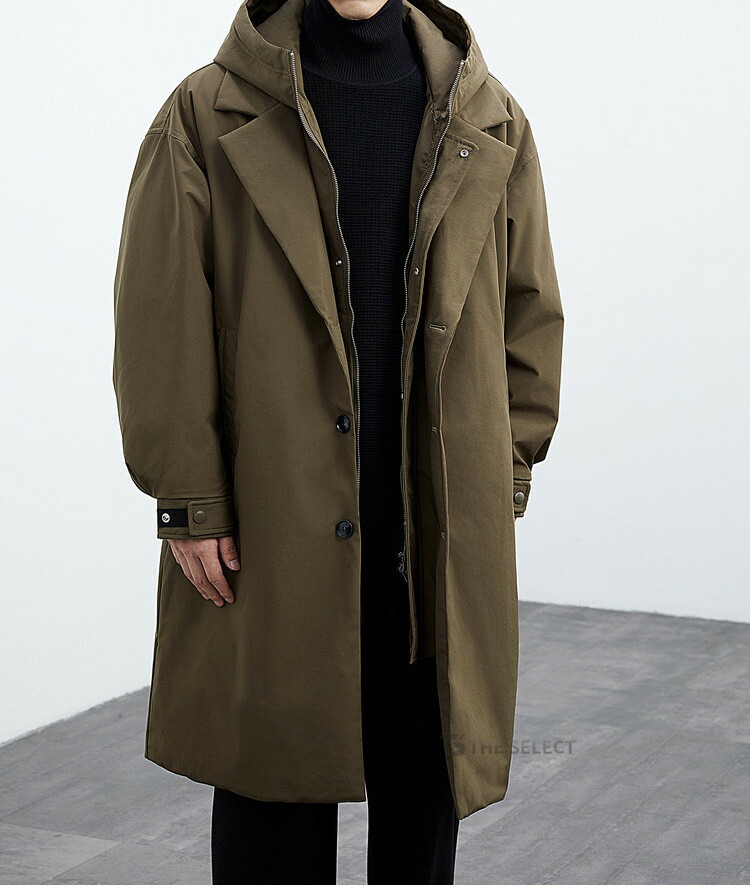 トレンチコート メンズ 綿入り ロング メンズファッション 新作 M L XL 2XL 3XL 4XL 5XL 6XL オリーブ 黒 中綿/オリーブ 中綿/黒