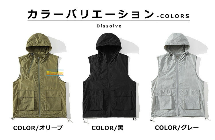 ウインドブレーカー サマーベスト メン メンズファッション 続々入荷中 M L XL 2XL オリーブ 黒 グレー