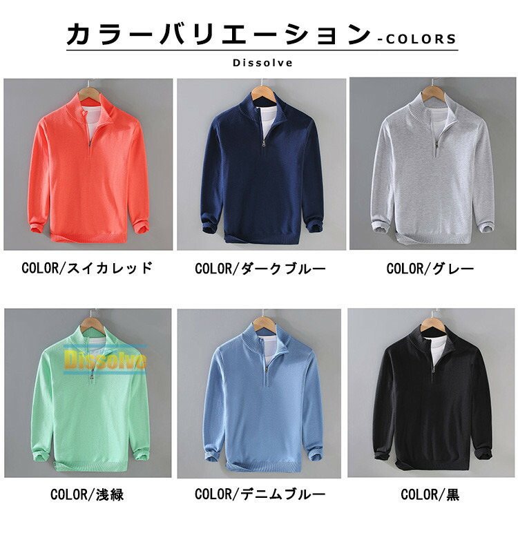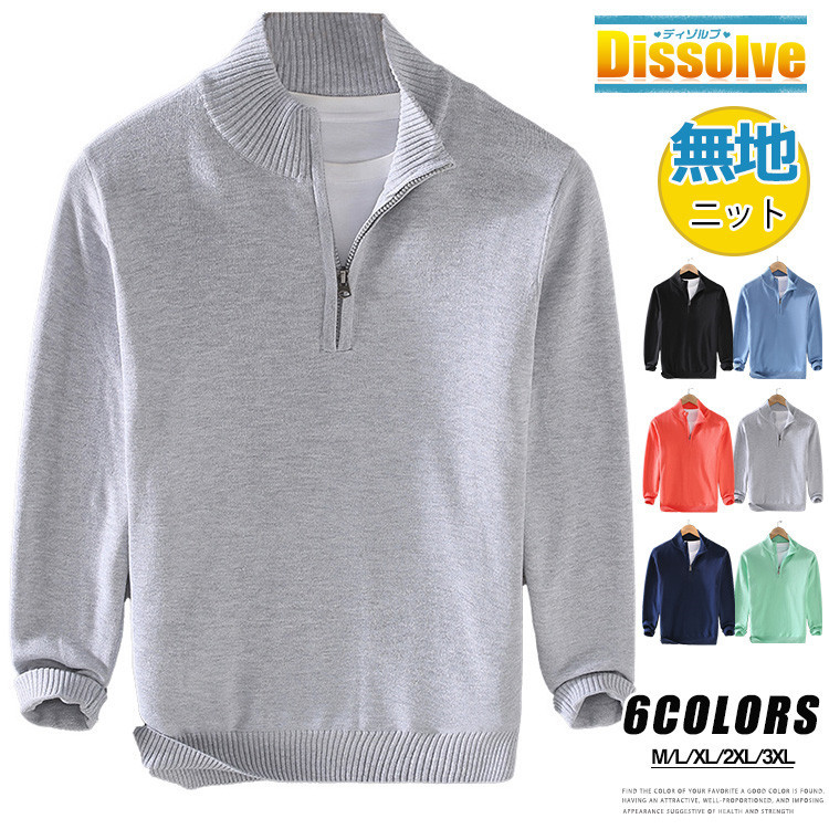 ハーフジップ セーター メンズ 無地 トップス ニット セーター 豊富な品揃え M L XL 2XL 3XL スイカレッド ダークブルー グレー 浅緑 デニムブルー 黒