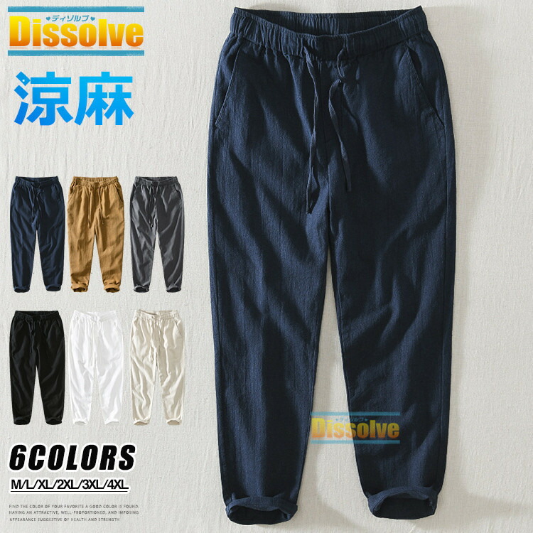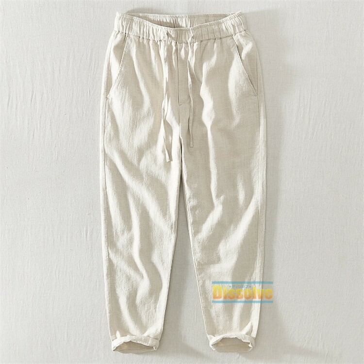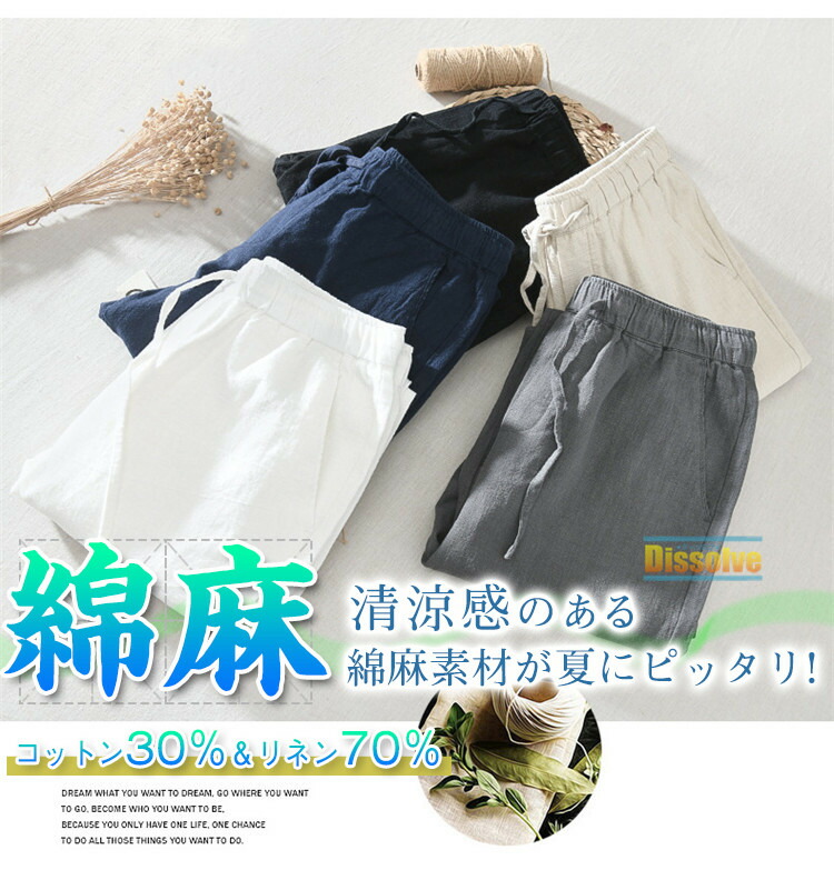 麻パンツ 無地パンツ メンズ 九分丈パ ズボン パンツ 新登場! M L XL 2XL 3XL 4XL グレー 黒 白 ベージュ ブルー ダークベージュ