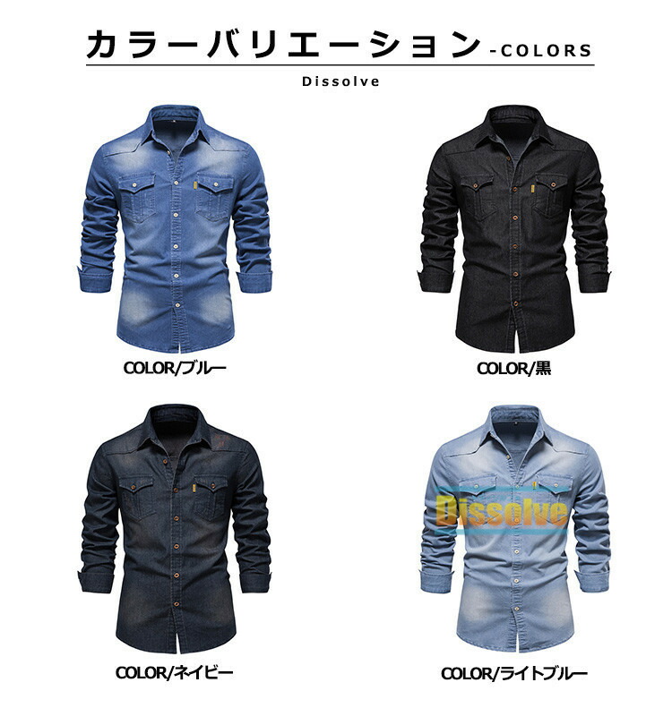 デニムシャツ 長袖シャツ メンズ シャ トップス カジュアルシャツ 続々入荷中 M L XL 2XL 3XL ブルー 黒 ネイビー ライトブルー