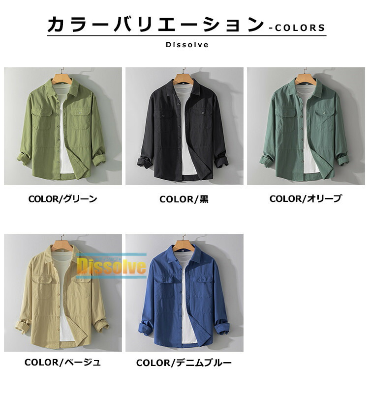 ワークシャツ メンズ 長袖 カジュアル トップス カジュアルシャツ 続々入荷中 M L XL 2XL 3XL 4XL グリーン 黒 ベージュ デニムブルー