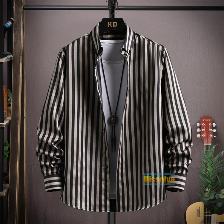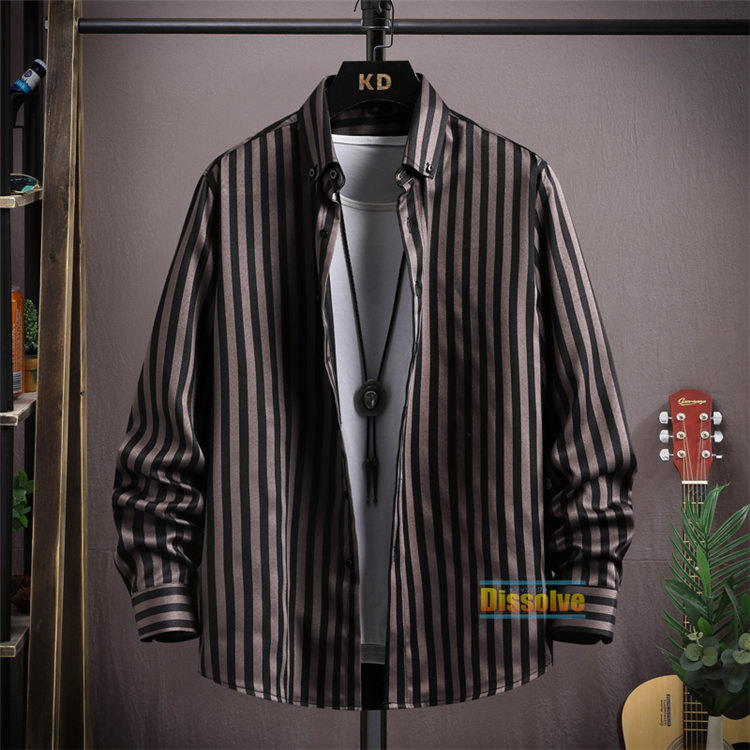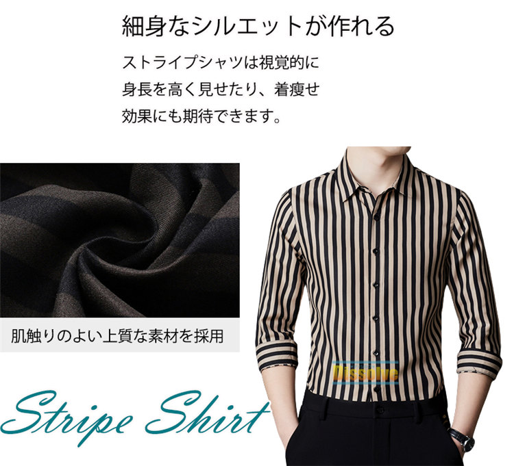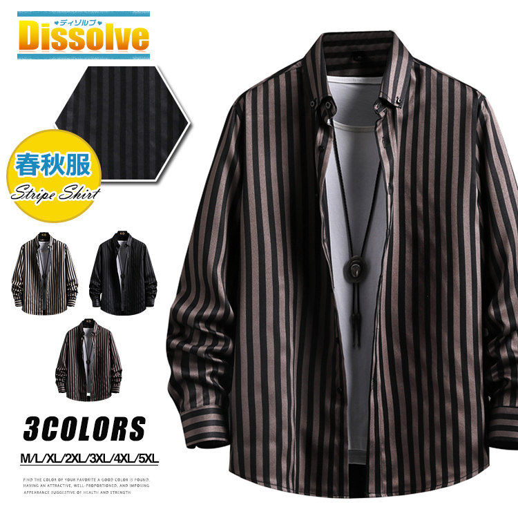 ストライプシャツ メンズ シャツ 薄手 トップス カジュアルシャツ 続々入荷中 M L XL 2XL 3XL 4XL 5XL ライトコーヒー 黒 ダークコーヒー