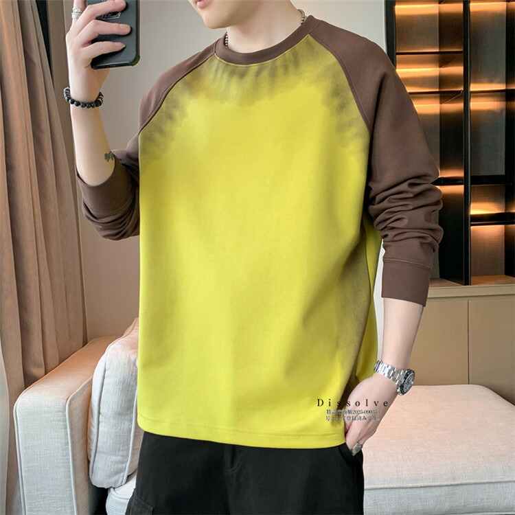 Tシャツ メンズ おしゃれ 長袖Tシャ トップス Tシャツ カットソー 通販 M L XL 2XL 3XL 4XL イエロー 杢グレー ダークグレー アイボリー