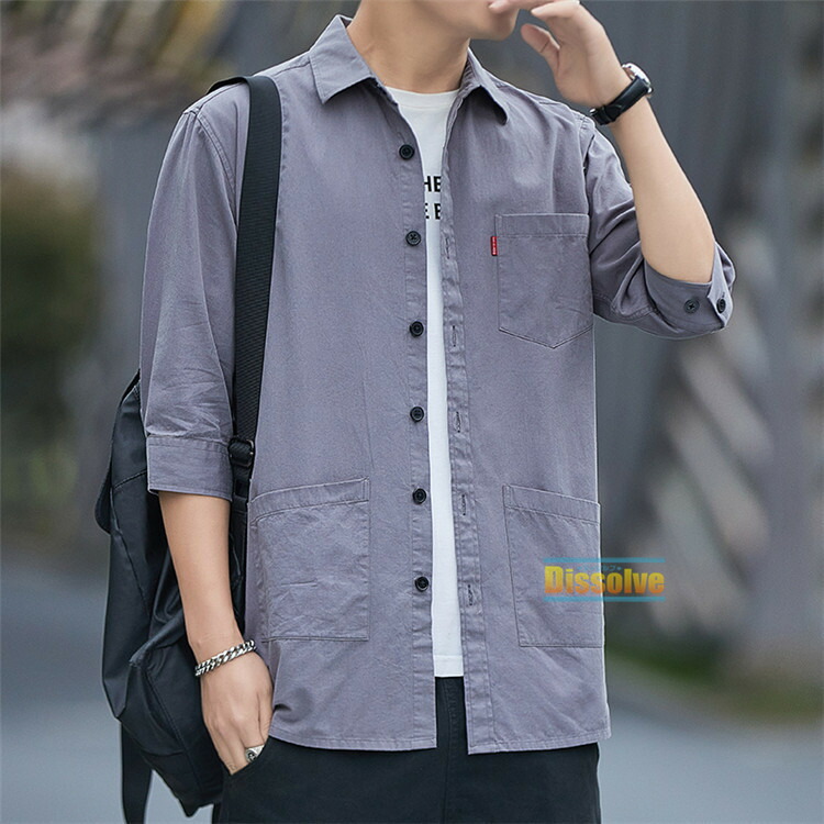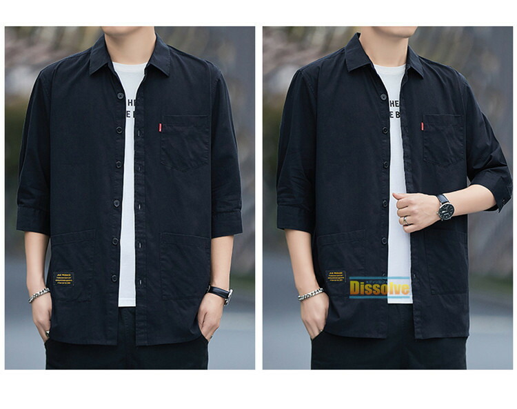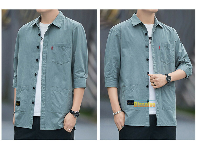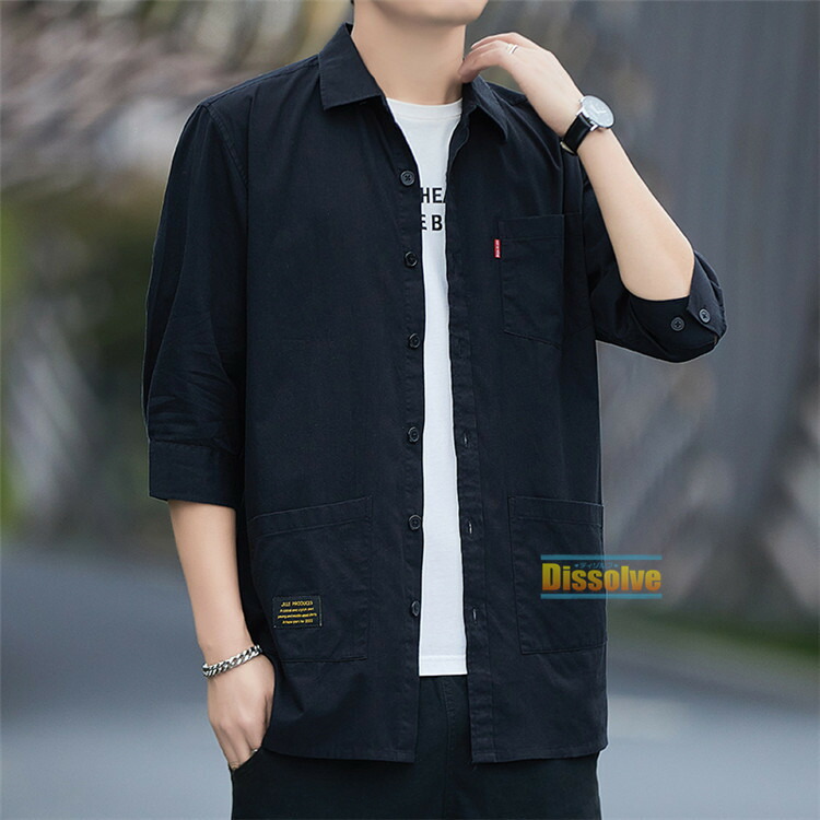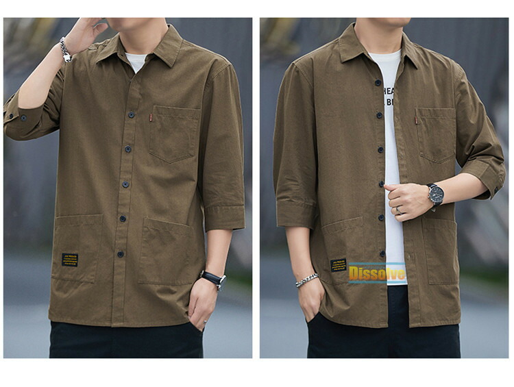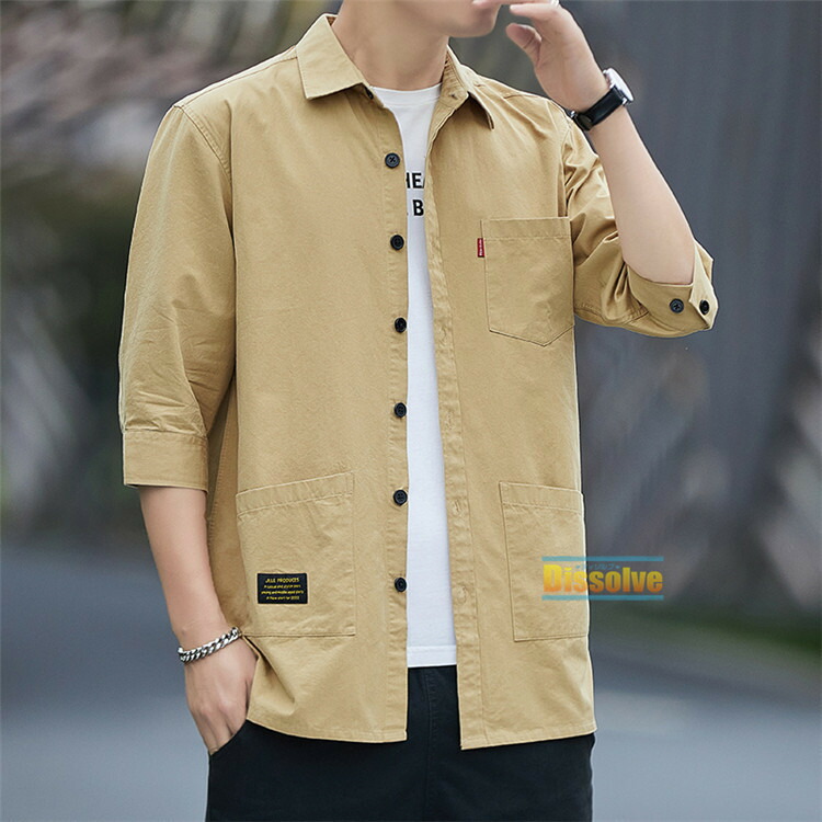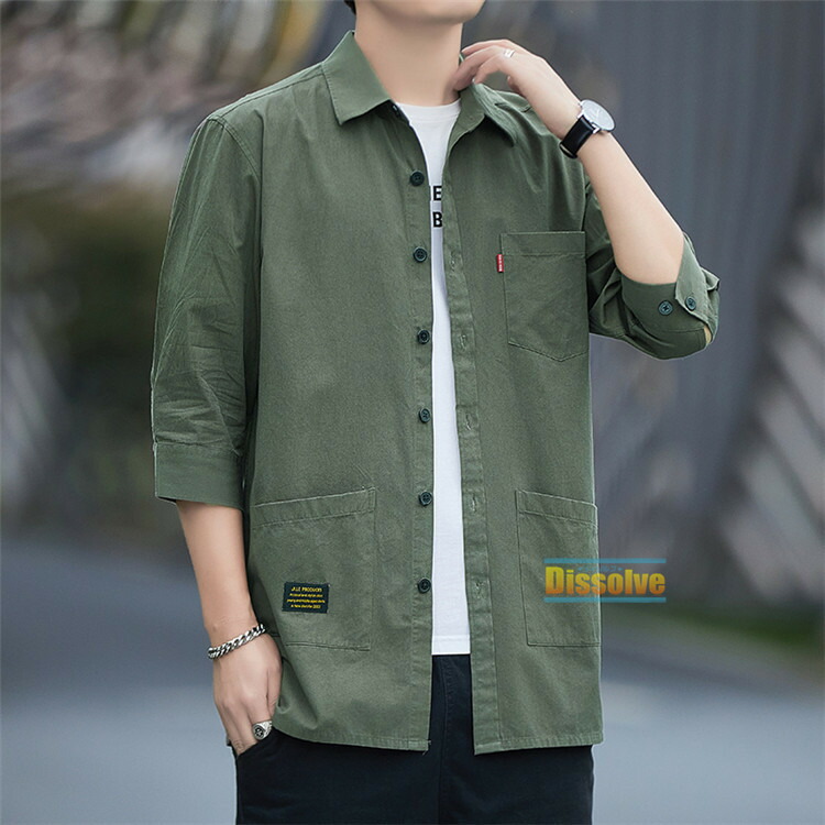 七分袖シャツ ミリタリーシャツ メンズ メンズファッション 新作 M L XL 2XL 3XL 黒 ベージュ コーヒー オリーブ 浅緑