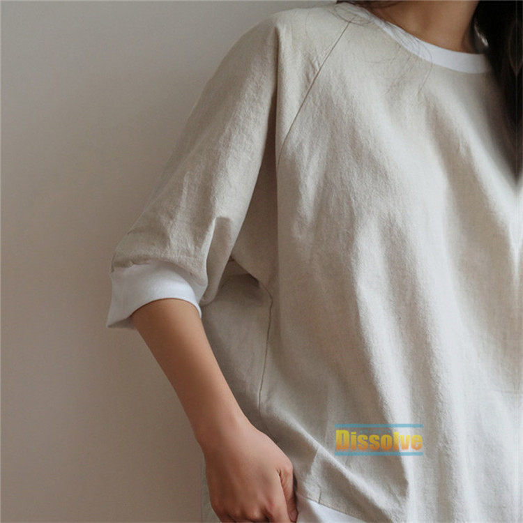 七分袖カットソー レディース トップス 麻 ゆったり Tシャツ ブラウス リネン 7分 半端丈 綿麻 体型カバー 7分袖 ラグランスリーブ ナチュラル 春夏 部屋着 母の日 プレゼント UVカット